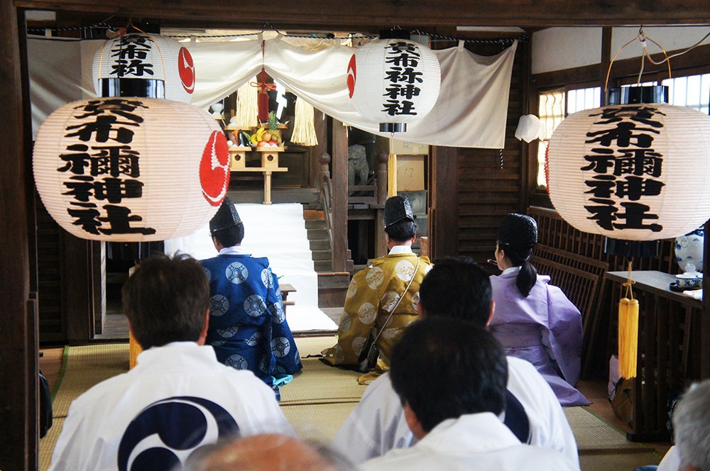 貴布禰神社は、約400年以上前に創建され、航海安全、漁業安全の守護神として、長浜の地域の方からとても大切にされてきました神社です。例大祭は、旧暦の4月14日・15日で、漁祭と言って、年中漁獲した魚の魂を祀ることも併せて行ってきました。現在は、5月の第3土日に斎行しています。また、小倉藩主である小笠原公から拝領した神輿(今回、火災による被害なし)や延宝7年(1885)に建立された鳥居などは、貴重な文化財として保存されています。