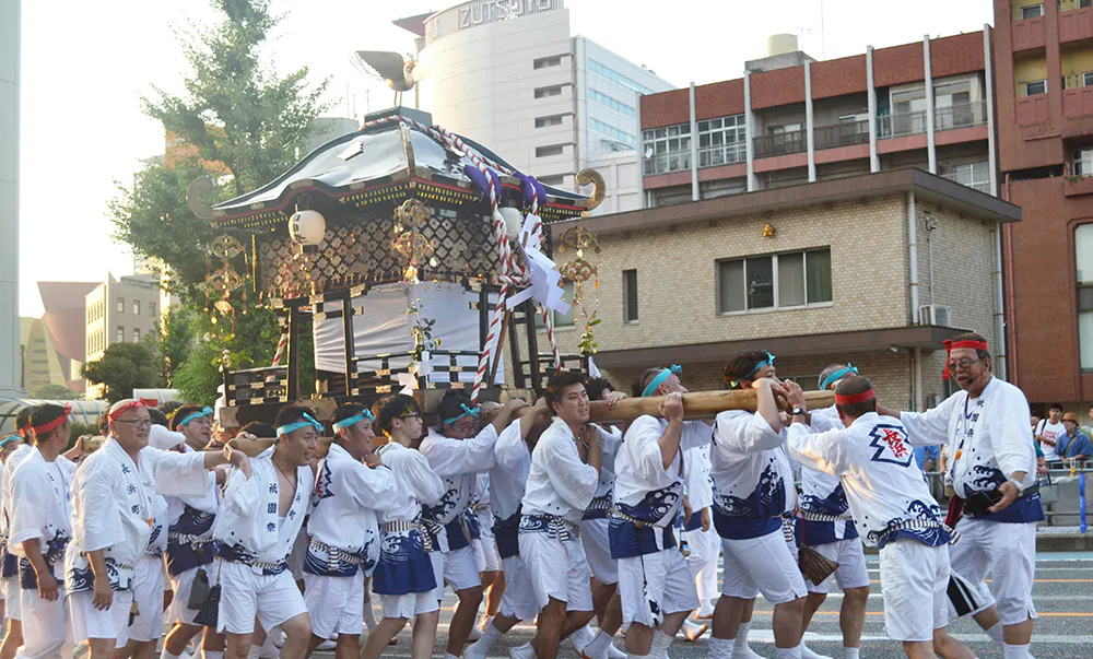 ②神輿担ぎ手:8 月の神輿巡行にて、小倉一重量のある神輿の担ぎ手として参加いただける権利です。法被、足袋、ハチマキ、白ズボンをお貸しいたします。※神輿の担ぎ手への参加は、ご支援頂いたご本人のみ(男性のみ)となります。ご参加できる権利の第三者への譲渡等はできません。※当神社までの往復交通費、宿泊費等は各自ご負担ください。