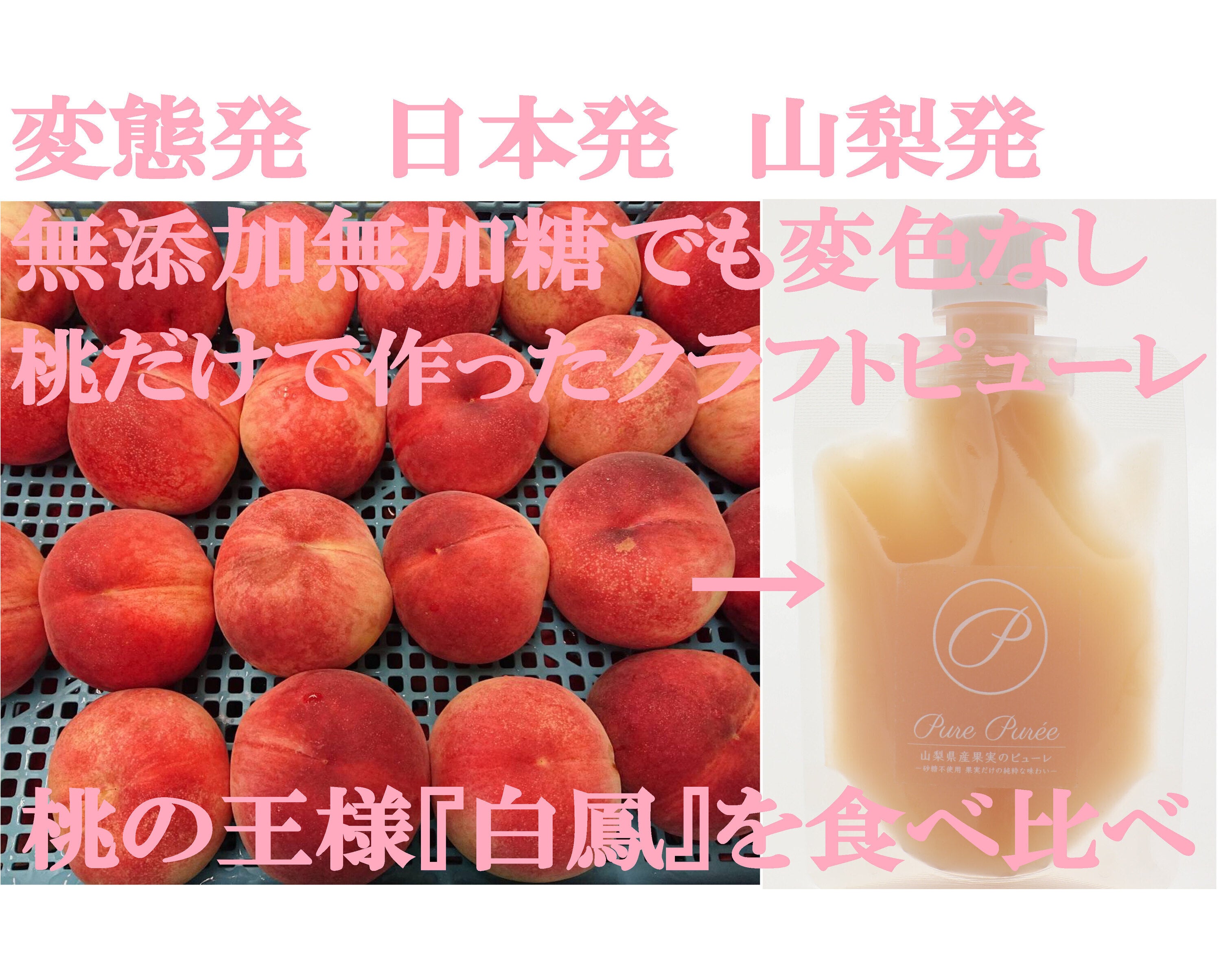 2022/05/31 19:46変態発 日本発 山梨発 無添加無加糖 桃だけのクラフトピューレ前回ご支援いただいた皆様、1年ぶりのご無沙汰です。ピュアピューレペーストは如何でしたでしょうか?きっと美味しく召し上がっていただけたと思います。今回、満を持して2度目のCAMPFIREを行います!先日やっとスタートすることが出来ました。今回も皆様を満足させる変態的逸品です!ぜひ今回も温かいご支援、応援の程どうぞよろしくお願いいたします。https://camp-fire.jp/projects/view/581772桃の王様『白鳳』を食べ比べ もっと見る返礼品発送完了(^^ゞ
