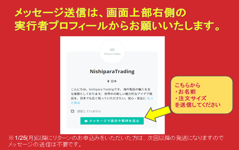 ・商品の生産には万全を期していますが、予期せぬ事態によりお届けが遅れる場合がございます。 その際は活動レポートにて速やかにご報告致します。