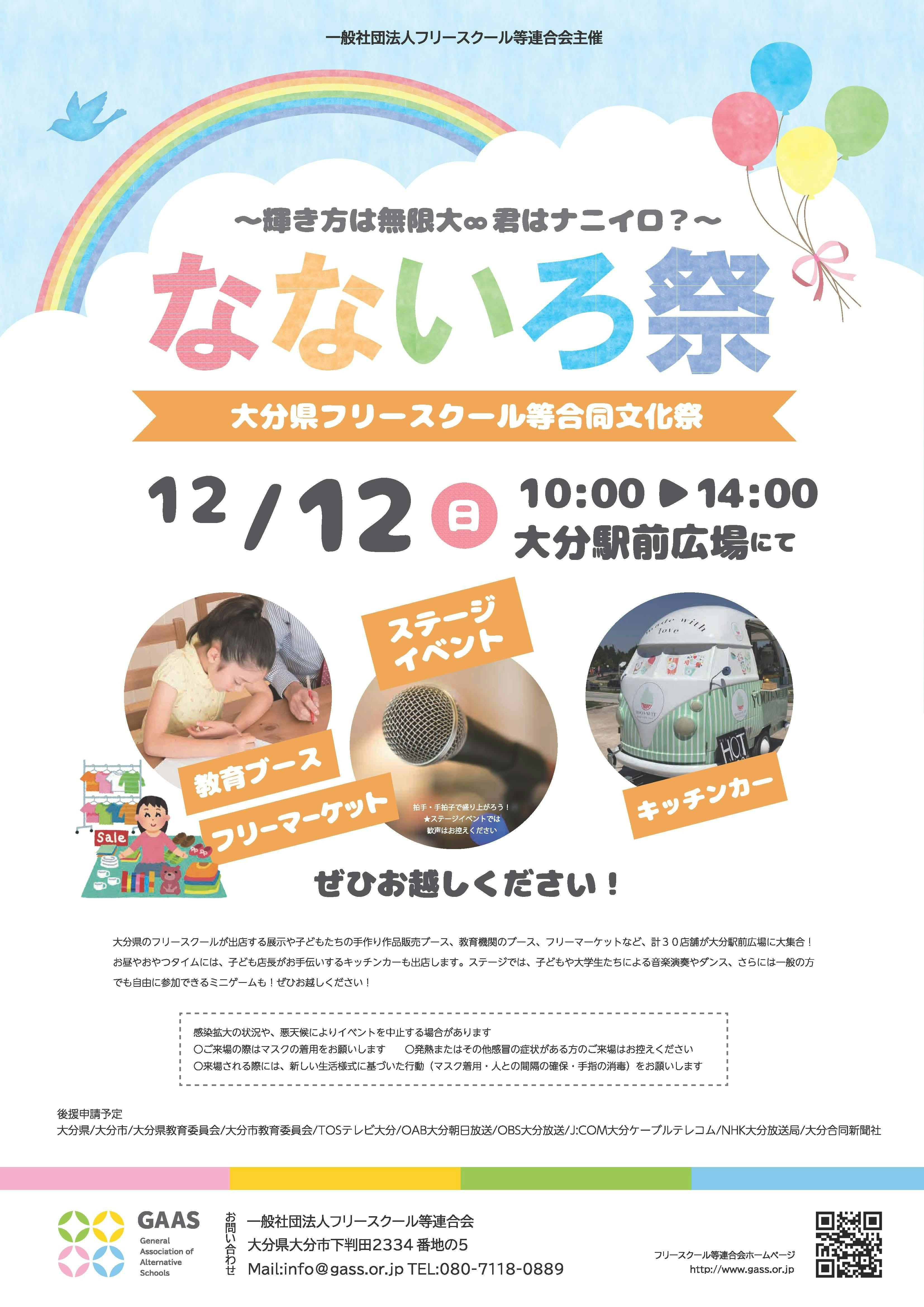 一般社団法人フリースクール等連合会主催「なないろ祭」が行われます。