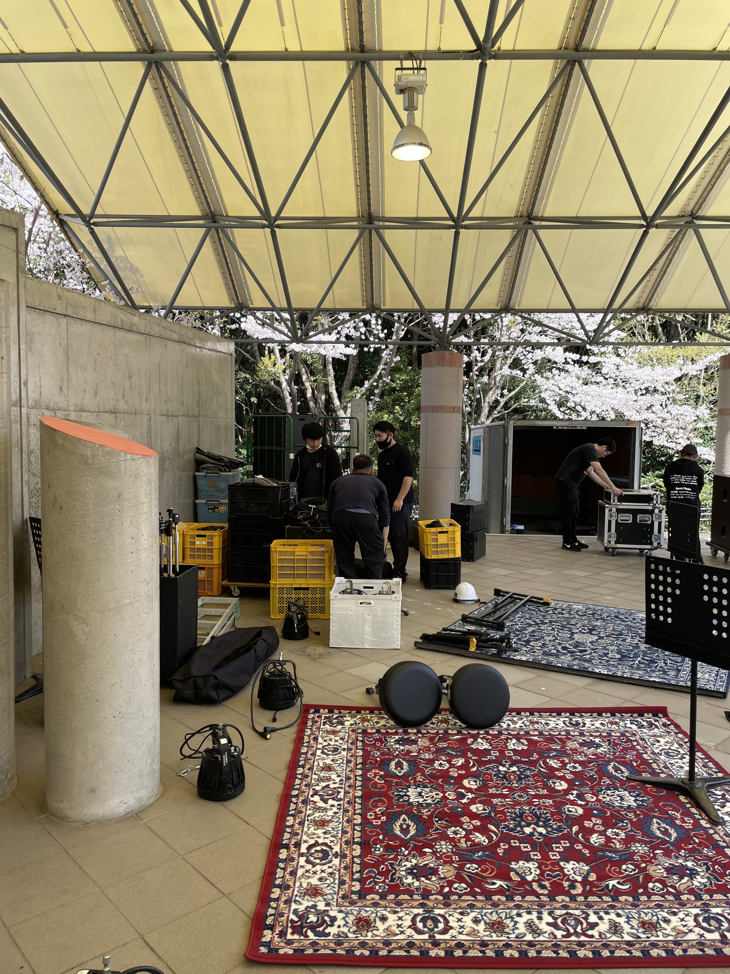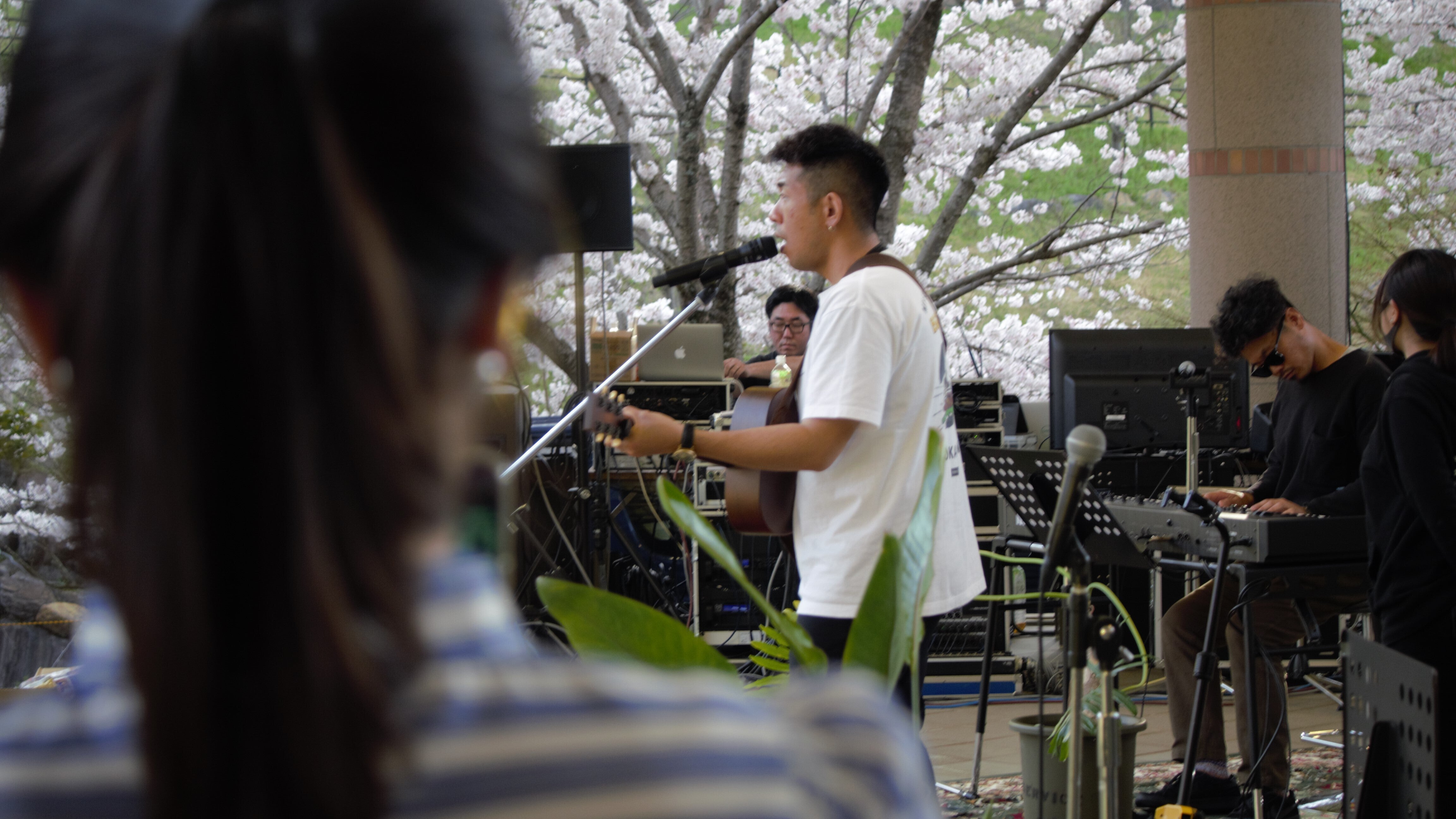 写真は、リハーサルの風景です。手前はMCさん。桜がいっぱいの大変美しい会場です!!江頭勇哉の公式youtubeに現在公開されている「エガフェス2020」をぜひご覧ください。無観客でライブ配信のみでしたが、2021は有観客でもっと皆さんと楽しみたい!!エガフェス2020