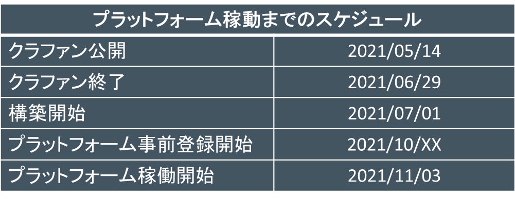 2021年11月3日にプラットフォームの稼働目指しております。