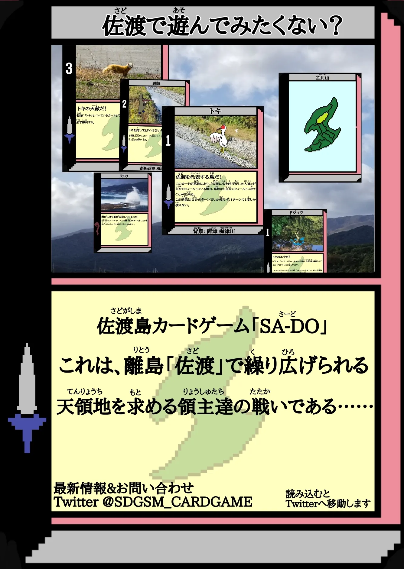 佐渡島カードゲーム「SA-DO」プロジェクト 代表 佐渡高校3年 長田悠馬です!佐渡のために活動する高校生のプロジェクトです!