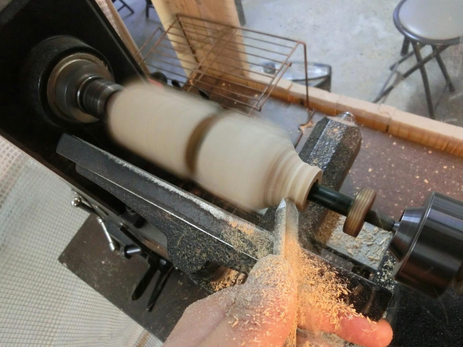 木工ろくろを使い、削っていきます。ここでどんな木目になるのか楽しみな瞬間です!