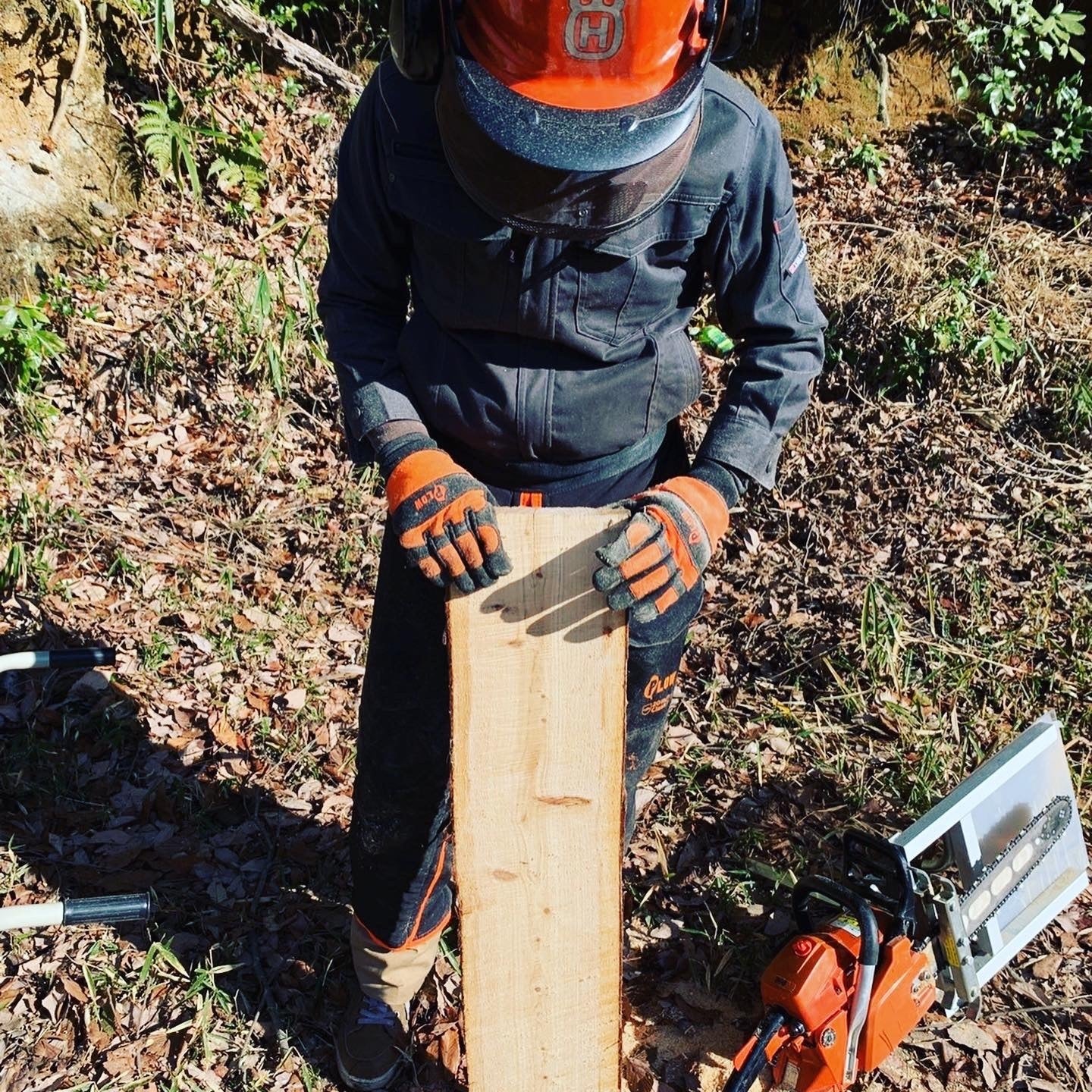 チェーンソーに板を作る道具を取り付けるととても重い、、、