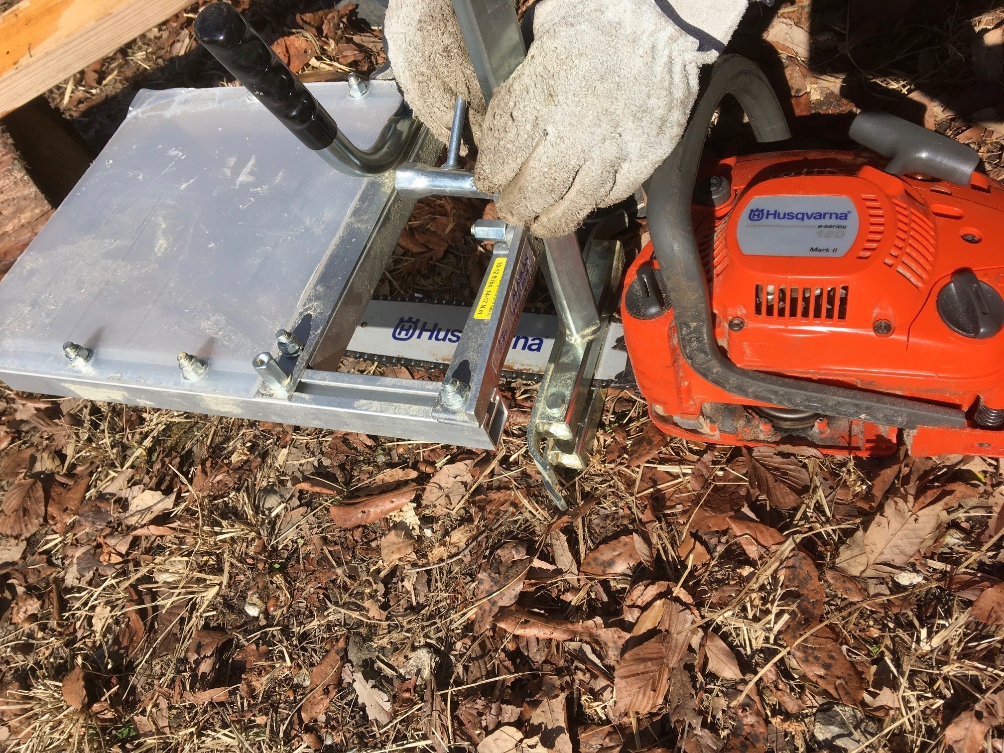 チェーンソーに取り付けて板を切りだす小型の製材道具です。