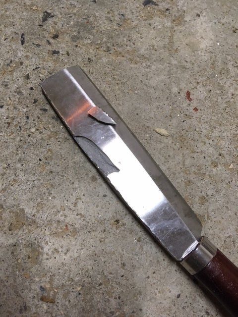 現在は斧とナタで必死に丸太をボールペンの木材になる大きさまで割っています。