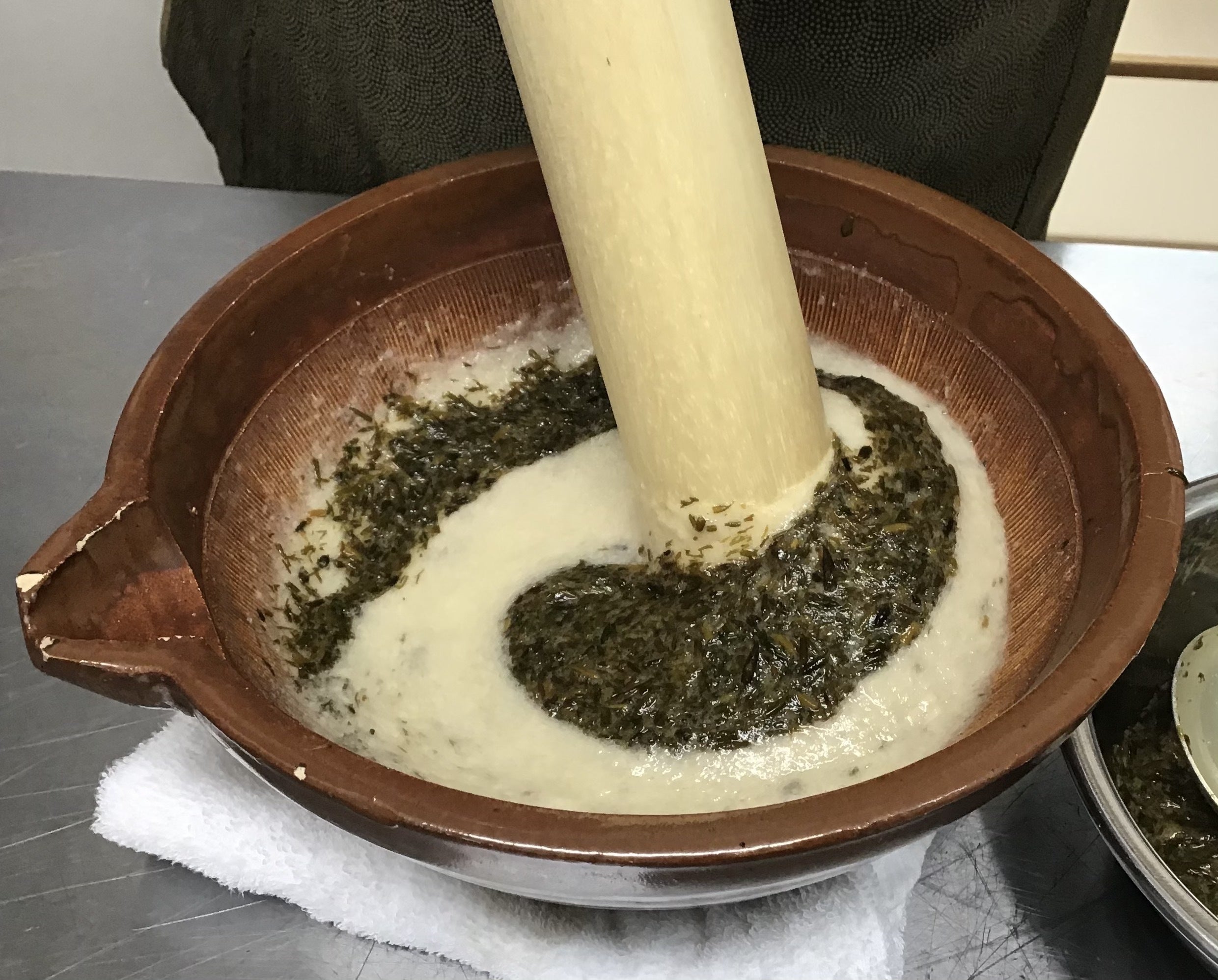 自然薯のネバネバとアカモクのネバネバ、どちらもすごい粘りで甲乙つけ難いです!!これを合体させます!! ただ今、味の調整中です。ダブル粘りの【自然薯アカモクとろろ】完成真近かです。