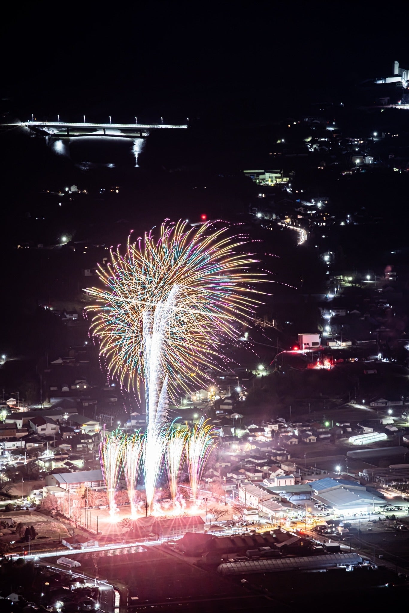 2021/03/15 11:14昨日3月14日(日)ホワイトデーに花火の打ち上げを開催いたしました大変に多くの皆様にご支援いただき、町内7カ所にて打ち上げることができましたメイン会場の中学校グランドでは、中学3年生、小学校6年生の子供たちが集まってくれ、見ていただくことができました感極まってしまう言葉を沢山いただき、本当に心から感謝ですこの写真は、地元の写真愛好家の方が町のシンボルでもある「小八郎岳」に登り撮影をしてくれました。全箇所一斉打上時の写真です本当に皆様ありがとうございました! もっと見る