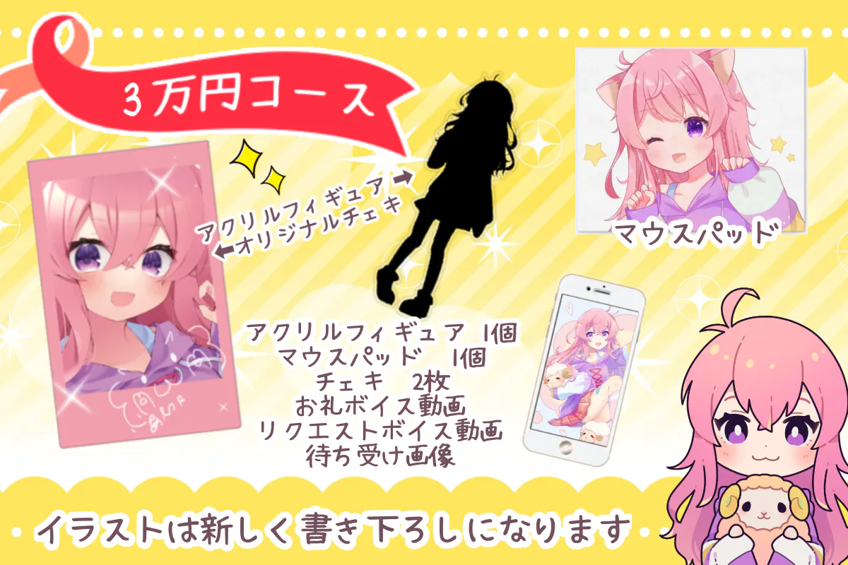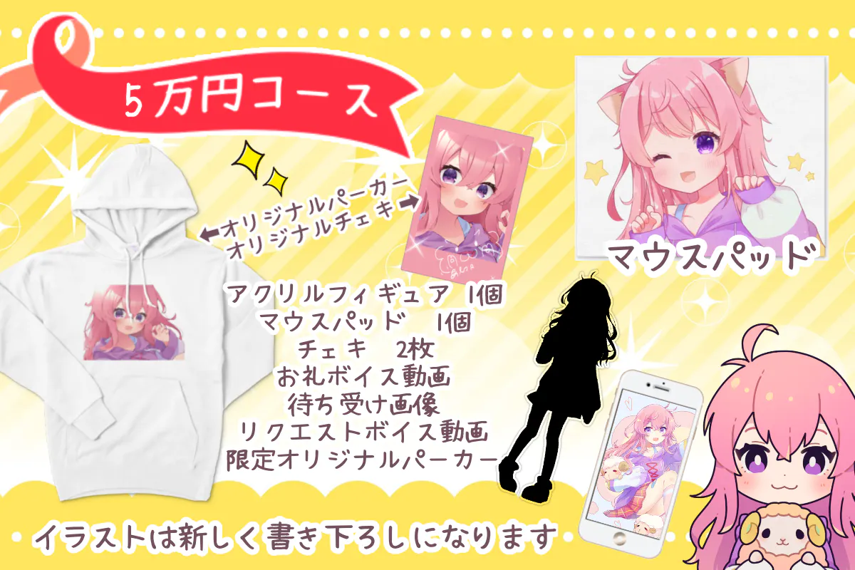 グッズはすべて新しいモデルのイラストになります。制作段階でサイズ変更がある場合があります。