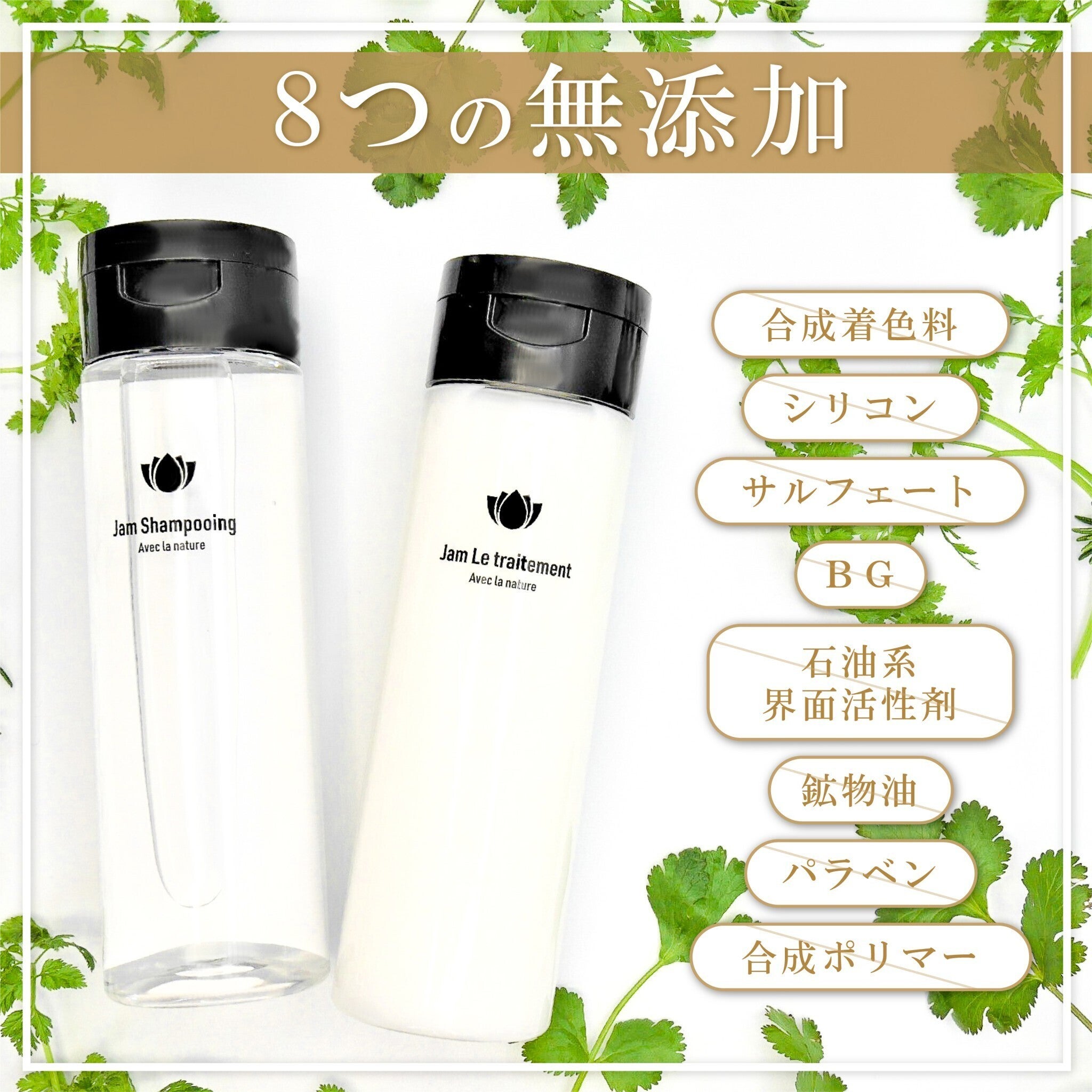 だからこそ頭皮や髪の環境を考えて、体に不要もものは入れない事にこだわり8つの無添加処方。