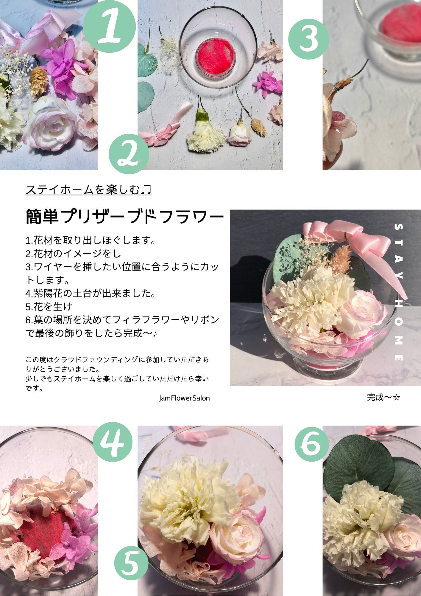 各リターン3名様にステイホームを楽しむ簡単プリザーブドフラワーキットをお付けいたします。