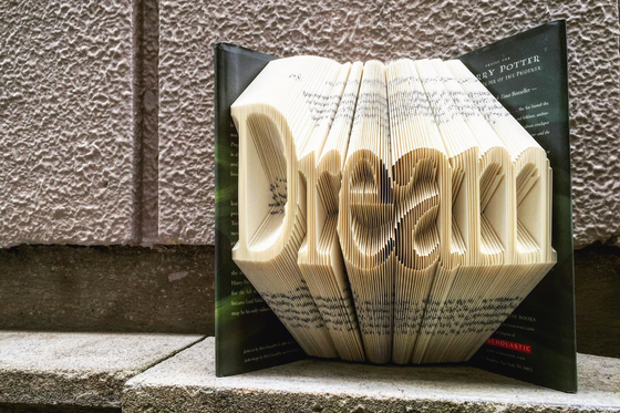 ブックフォールディングとは、本のページを折って立体的な文字や形を表現するものです。