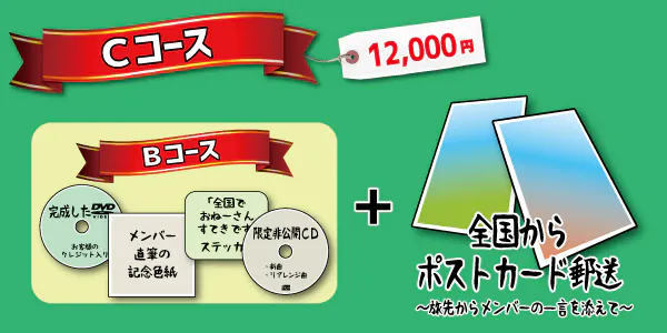★Bコースに加え、メンバーからのひと言を添えたポストカードが各地域から郵送されてくるタイムリーなコース。いろんな旅先からポストカードが届くなんてロマンチックだネ!(全7通予定)