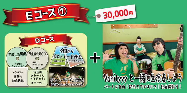 ★Dコースに加え、Vanityyyの生演奏に参加できるコース。パートはもちろん選べます。得意のパートでVanityyyと演奏しよう!