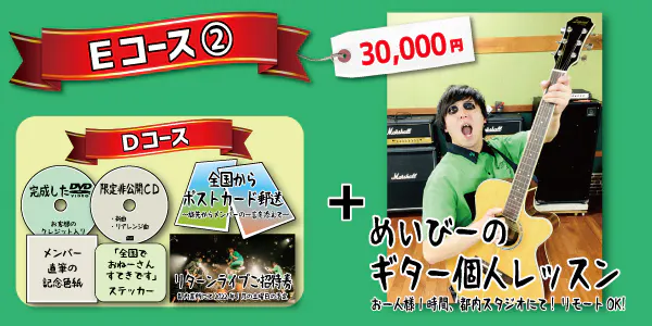 ★Dコースに加え、Vanityyyのギタリストめいびーいちのへの個人レッスンが受けられるコース。マンツーマンであなただけのために心を込めてギターを教えます♡