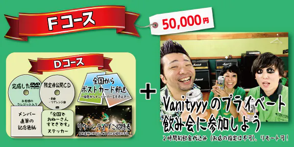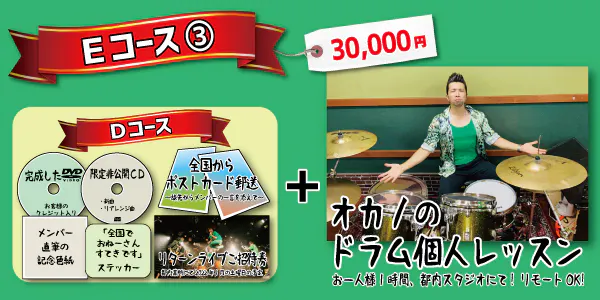 ★Dコースに加え、Vanityyyのドラマーオカノ・タケノリの個人レッスンが受けられるコース。