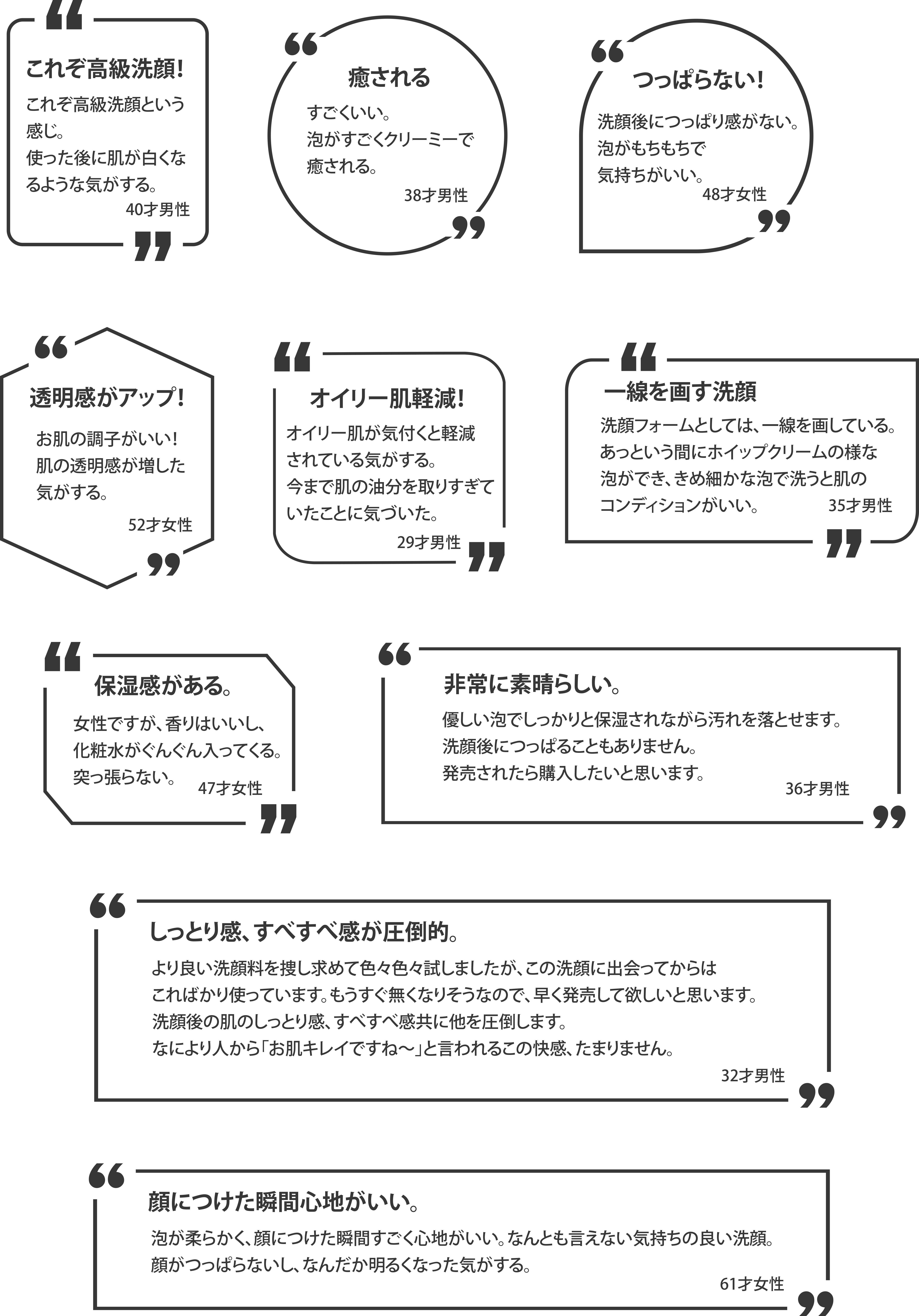 肌にダメージを与えない、強すぎる洗浄成分を入れない、もっちりコシのあるクリーミーな泡、毛穴の汚れをしっかり落とす洗顔を作る。