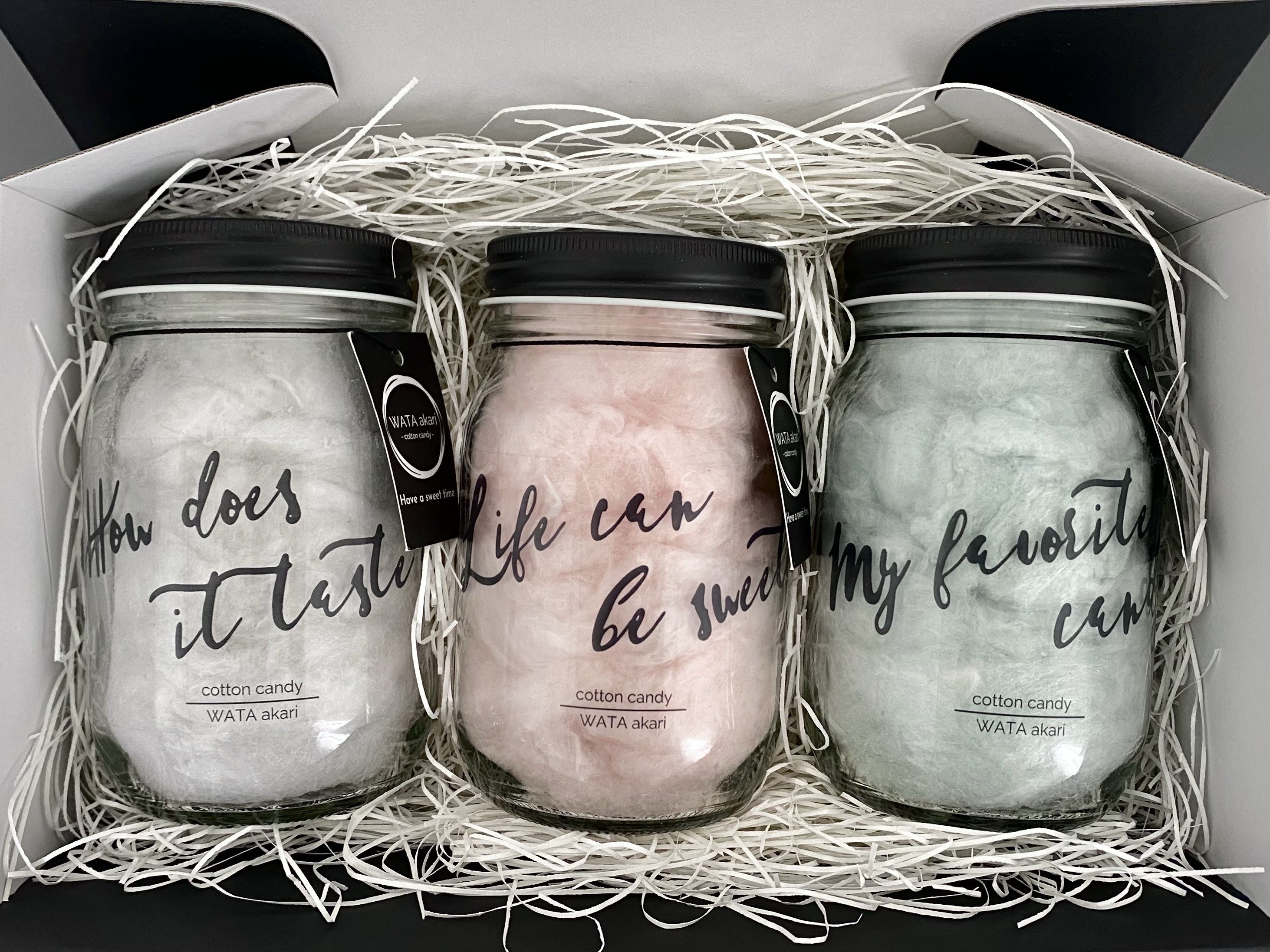 また、フレーバーコットンキャンディ3本セットをお送りします。冷蔵での発送で、送料込みとなります。