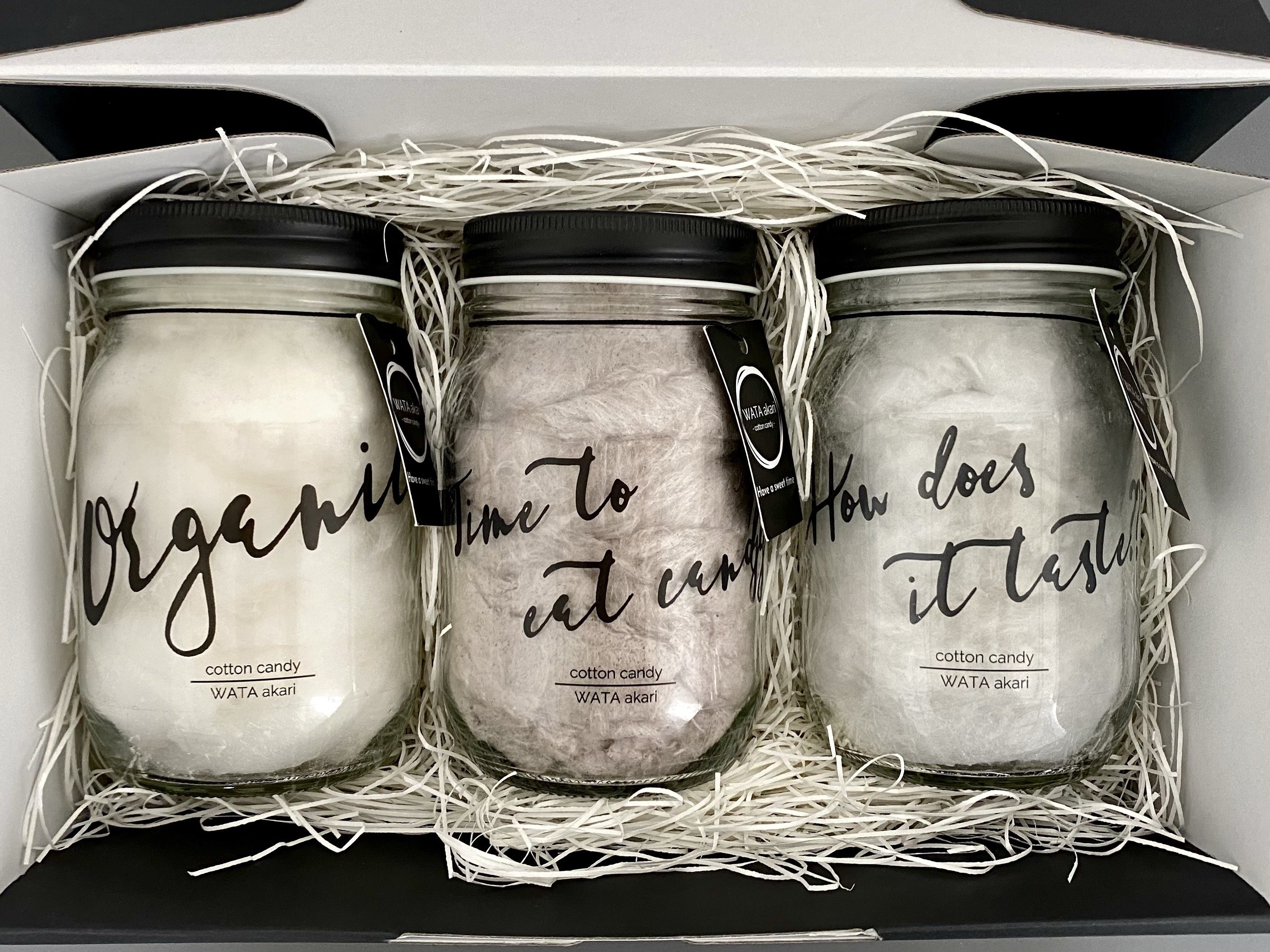 また、フレーバーコットンキャンディ3本セットをお送りします。冷蔵での発送で、送料込みとなります。