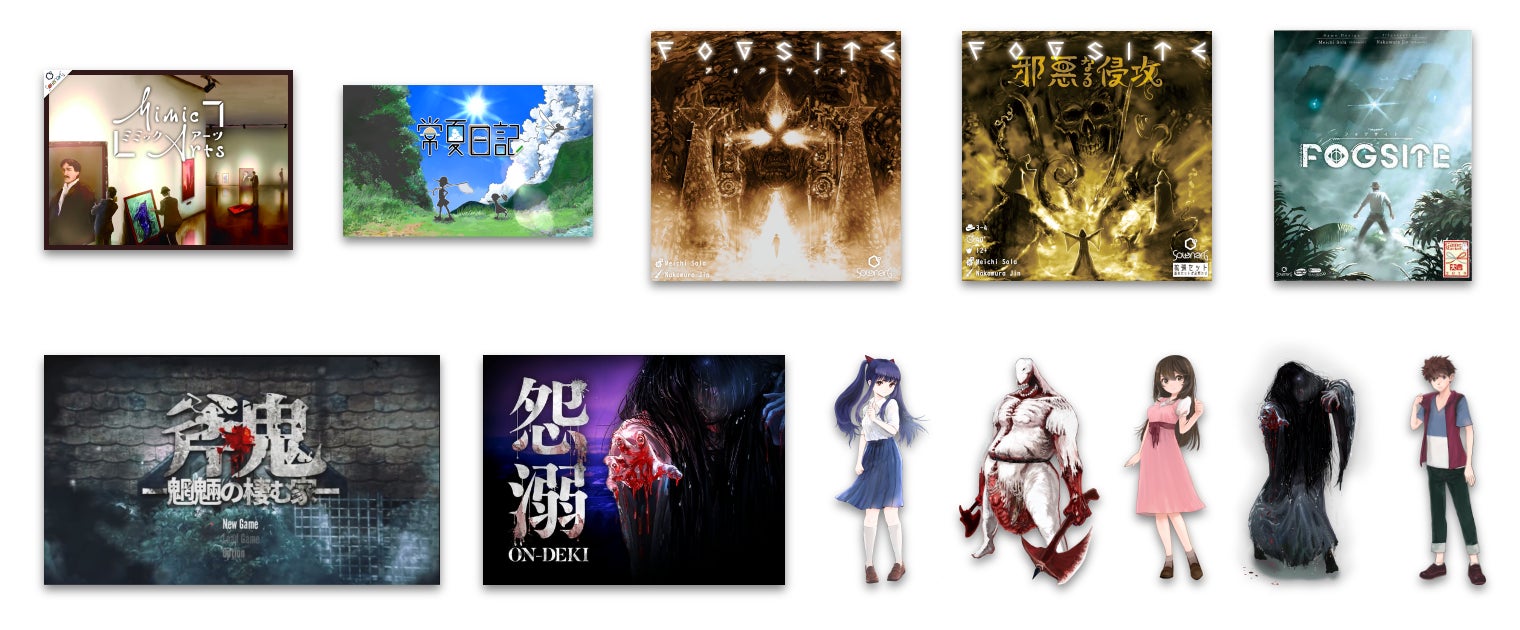 ボードゲームの体験の質を高めてくれるイラストと世界観は、SoLunerGの過去作品のパッケージイラスト(上段)などを手がけ、「愛餓え男」名義でフリーホラーゲームのキャラクターデザインやシナリオ(下段)なども手がける中村 尽に依頼しました。