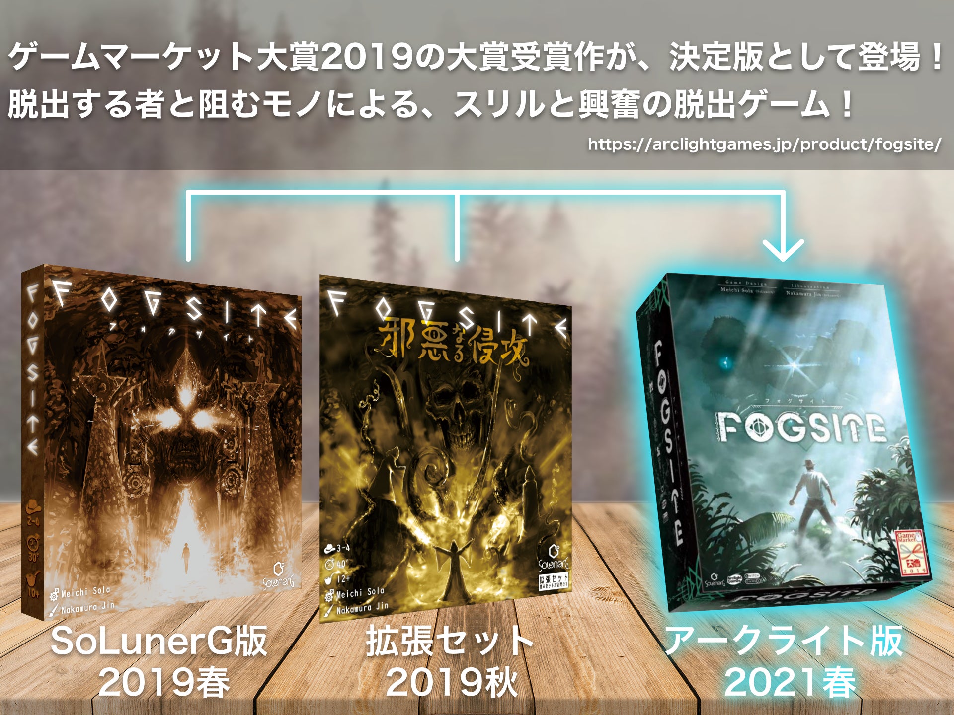 その甲斐あってか、前作『FOGSITE』は日本最大のボードゲームイベント「ゲームマーケット」にて400本を数時間で売り切り、その後追加した通信販売も一瞬で完売するなど大盛況でした。
