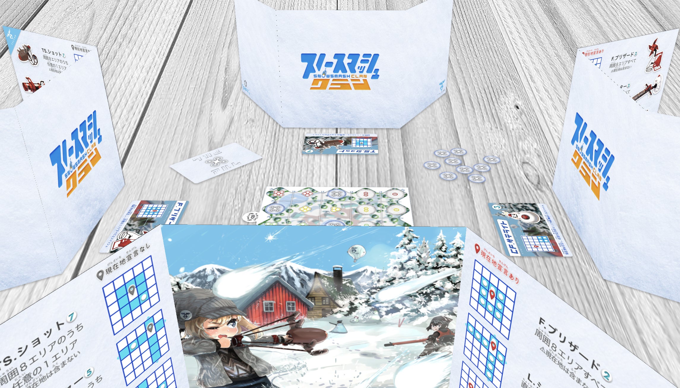 気軽に遊べる2〜4人用のサバイバルゲーム『スノースマッシュ・クラン』!コロナ禍でも最新作のボードゲームを皆さんにお届けするため、クラウドファンディングに挑戦します。イベント出展に向けて鋭意制作中です!