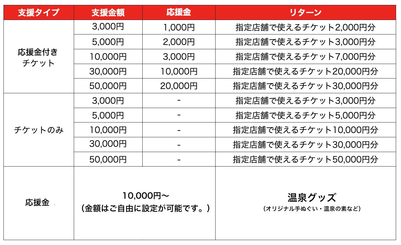 応援したい店舗(施設)で使えるチケットに応援金が上乗せされています。