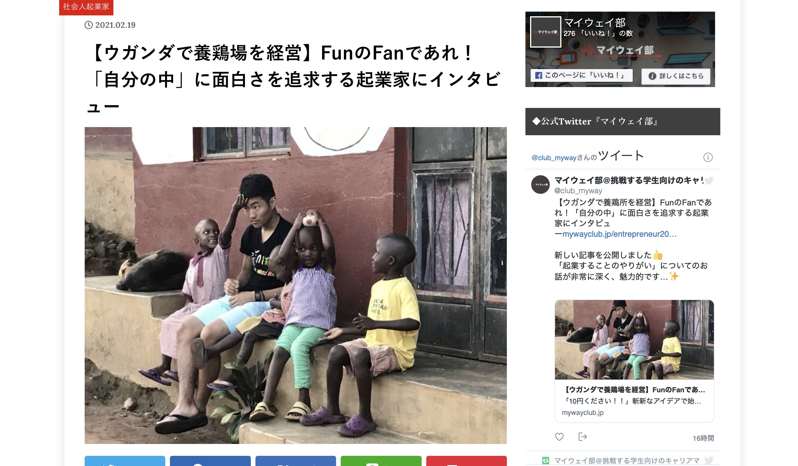 ウガンダで養鶏場を経営していた時の話から、起業するまでの経緯などをインタビュー形式で記事になっています!