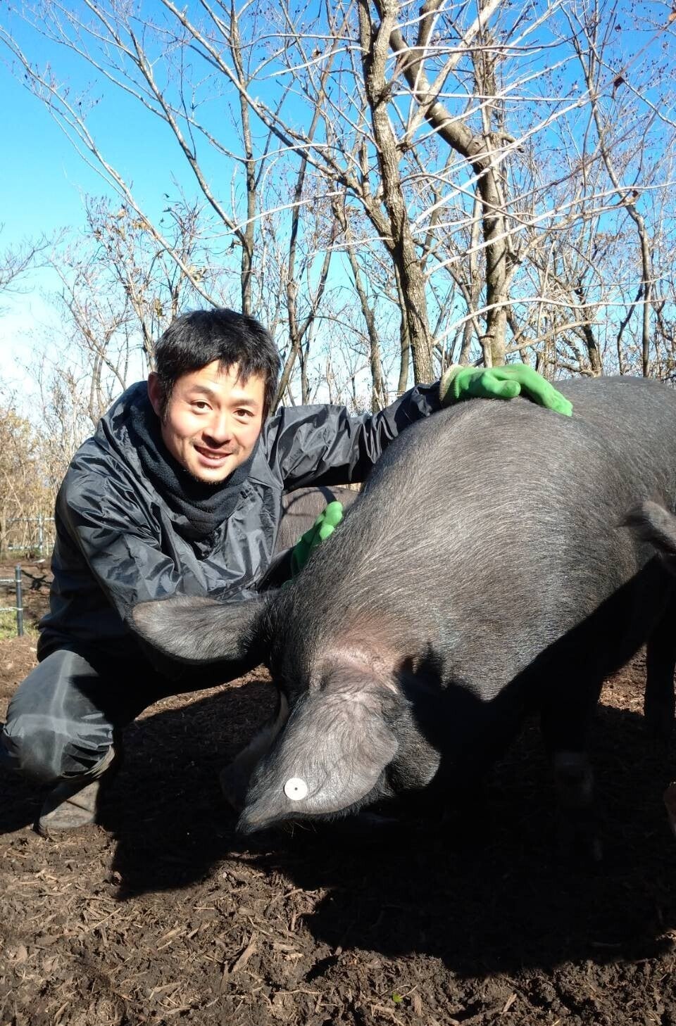 さらに、NPO日本放牧養豚研究会理事の山下哲生さんを訪ね、山下さんが経営していた(有)黒豚振興エージェンシーで約8ヶ月間、種豚の飼育や選別方法、放牧の勉強等をさせていただき、最終的には同社から業務委託を受けて一人で飼育管理ができるところまでのスキルを身に付けました。