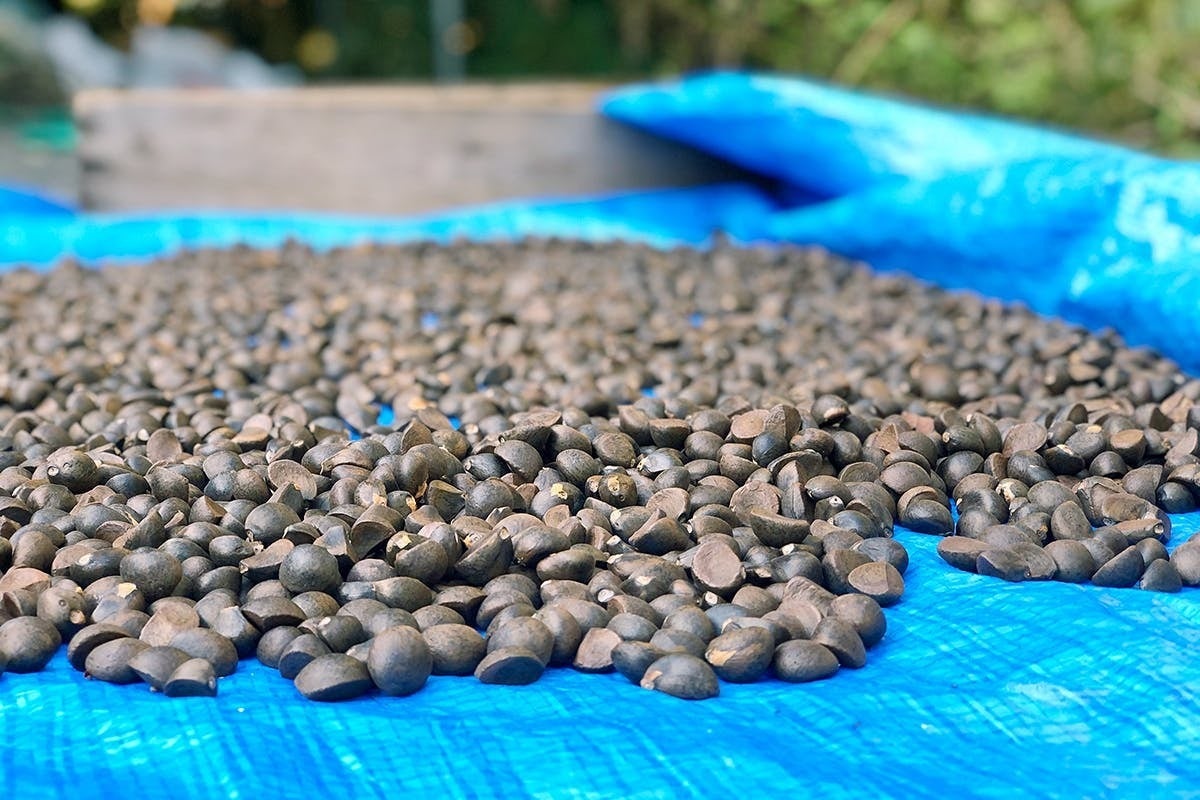 伊豆大島に広く自生する椿の実の成分がドングリとほぼ一緒であることを知り、イベリコ豚の飼育方法を活用できないかと考えました。