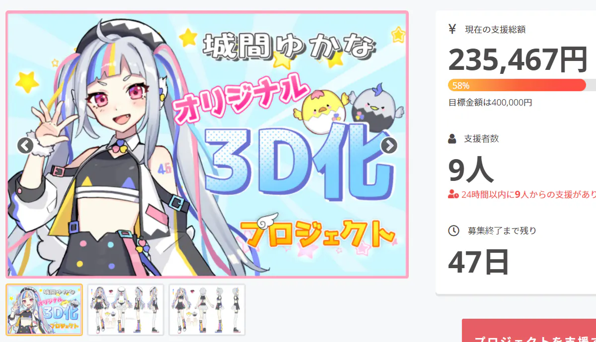 皆さんの応援のお陰で既に9人の方がご支援くださり、58%も突破することができました( ´•̥̥̥ω•̥̥̥` )
