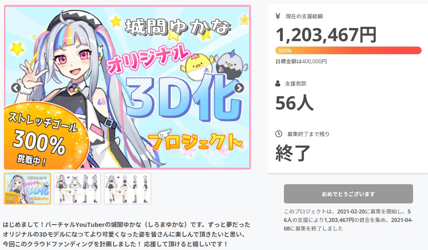 クラファン終了&300%達成ありがとうございます!