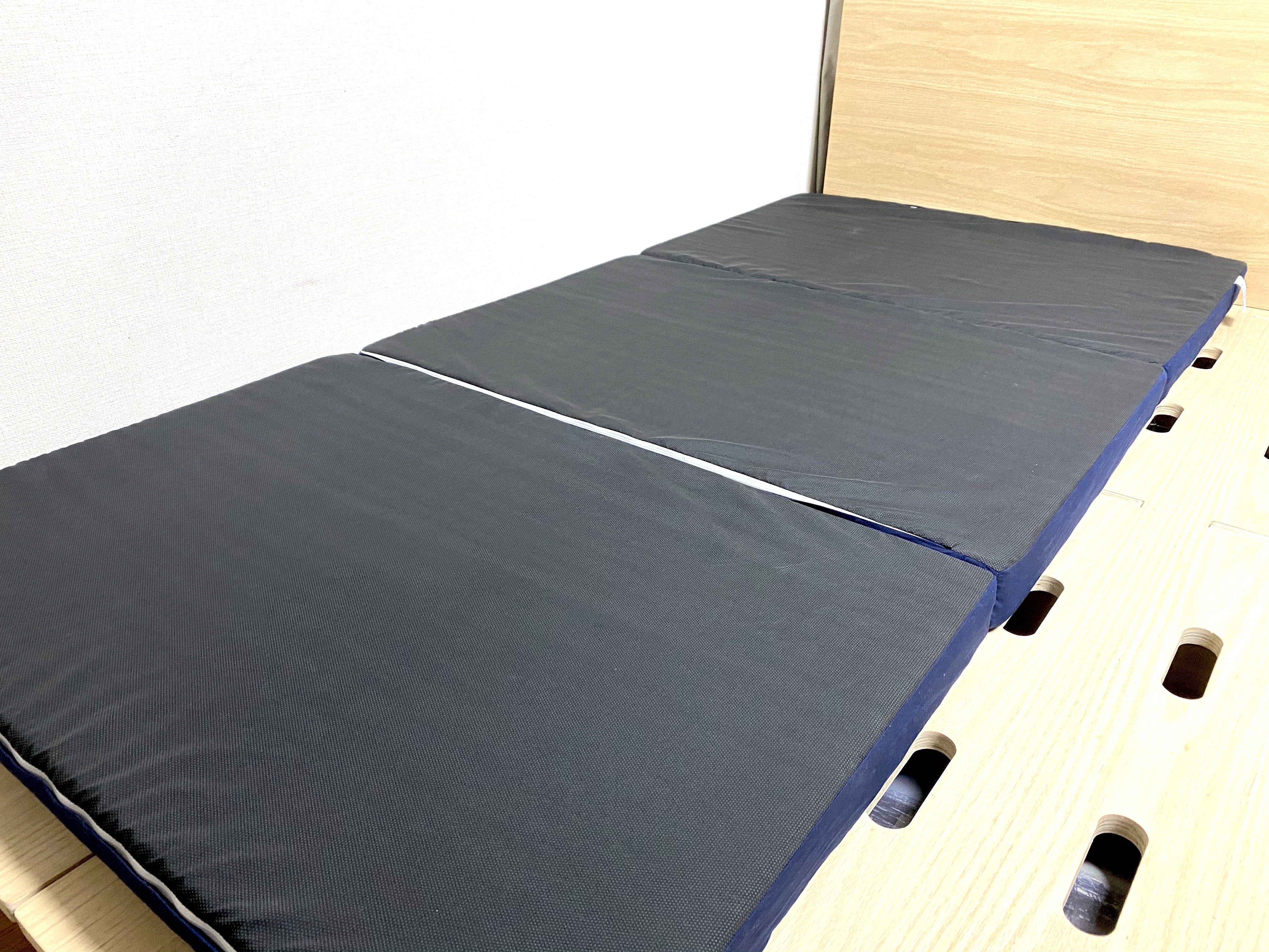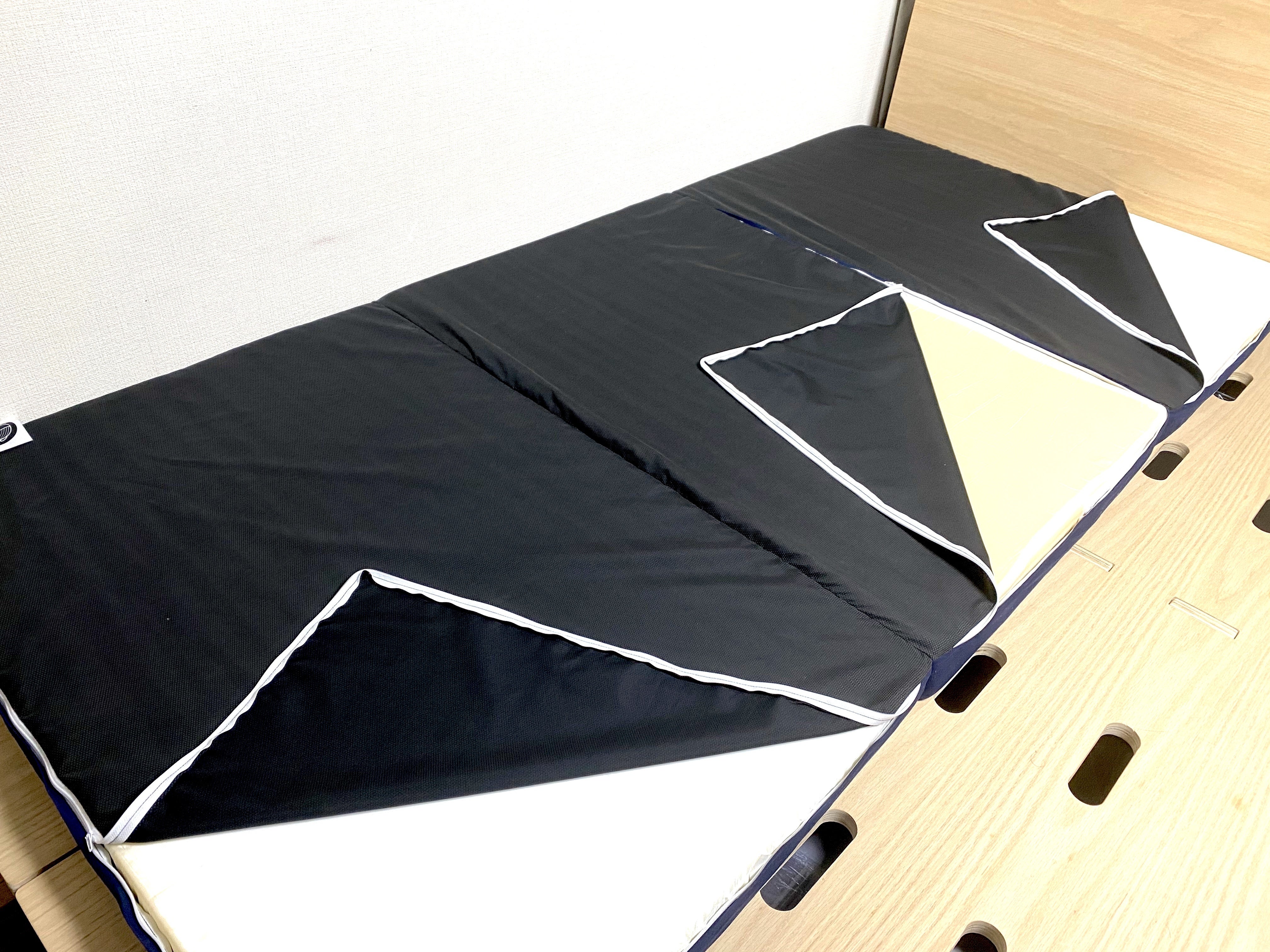 床に敷いていると、どうしても湿気が溜まってしまうので、1週間に1度は立て掛けて陰干しするようにしましょう。三つ折りなので、壁に立てかけなくても単体で独立します。また、ウレタンの寿命を延ばすために、中のウレタンの裏表を入れ替えたり、2枚あるウレタンを入れ替えたりして、マットレス自体の負担を分散させると長持ちします。