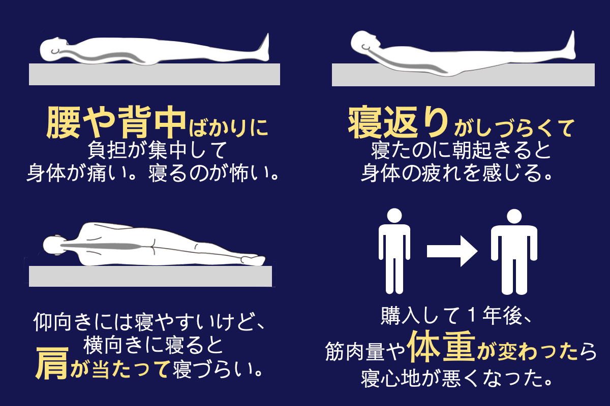 その中で、マットレスに関する次のような悩みが多いことに気づきました。