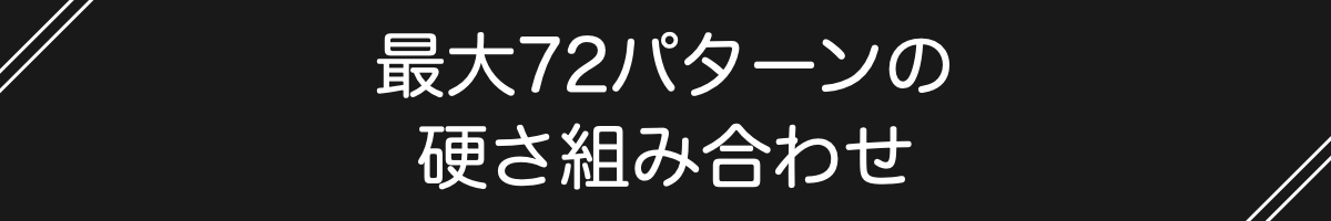 【2層構造】x【センターハード構造】を維持した組み合わせは6パターンですが、そこからさらに72パターンまで自分に合うように調整が可能です。まずは先程の推奨6パターンを試していただき、そこから少しずつ調整してみてください。
