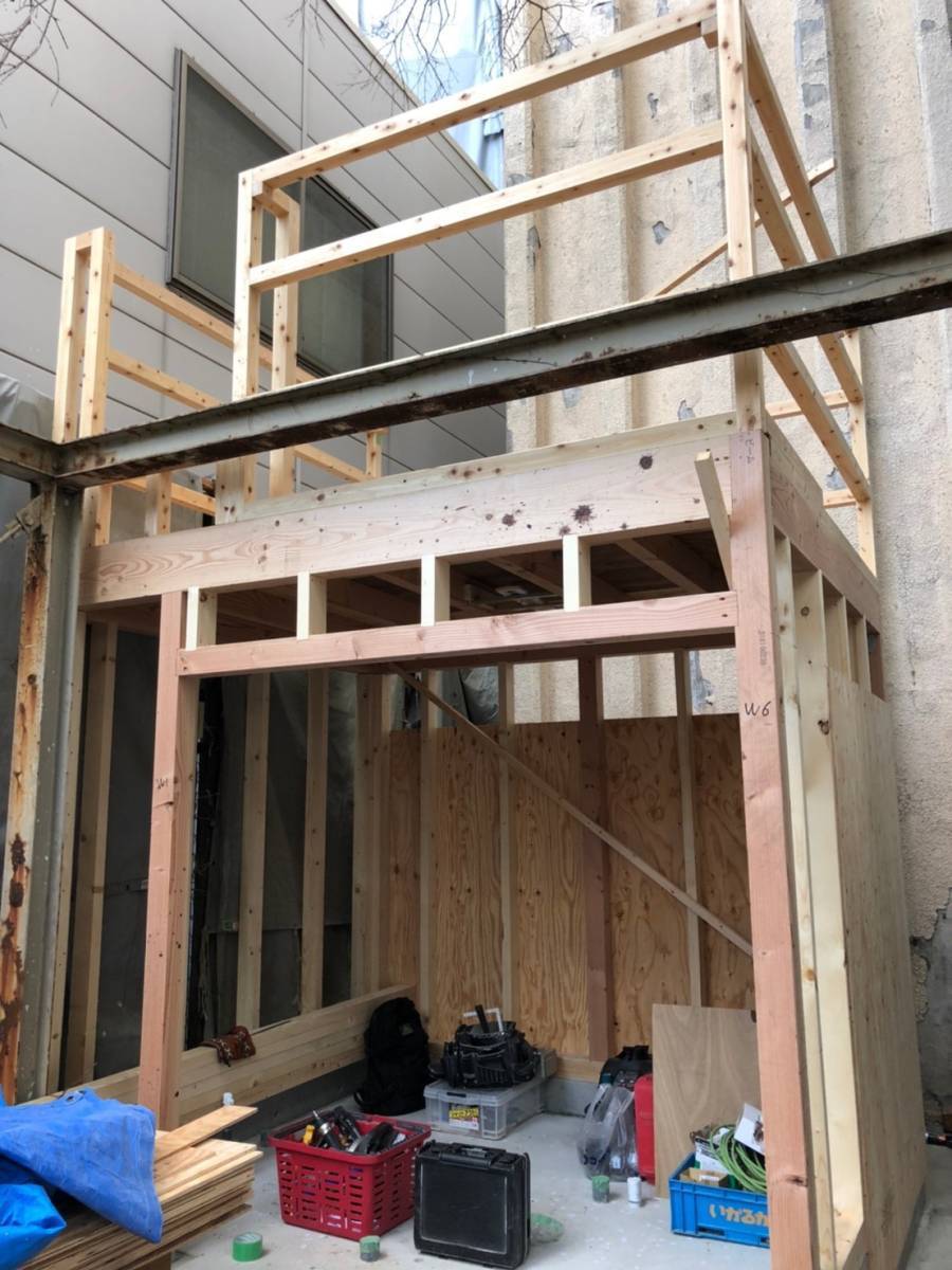 というわけで、上棟式の翌日にはすでに手すりがついておりました!