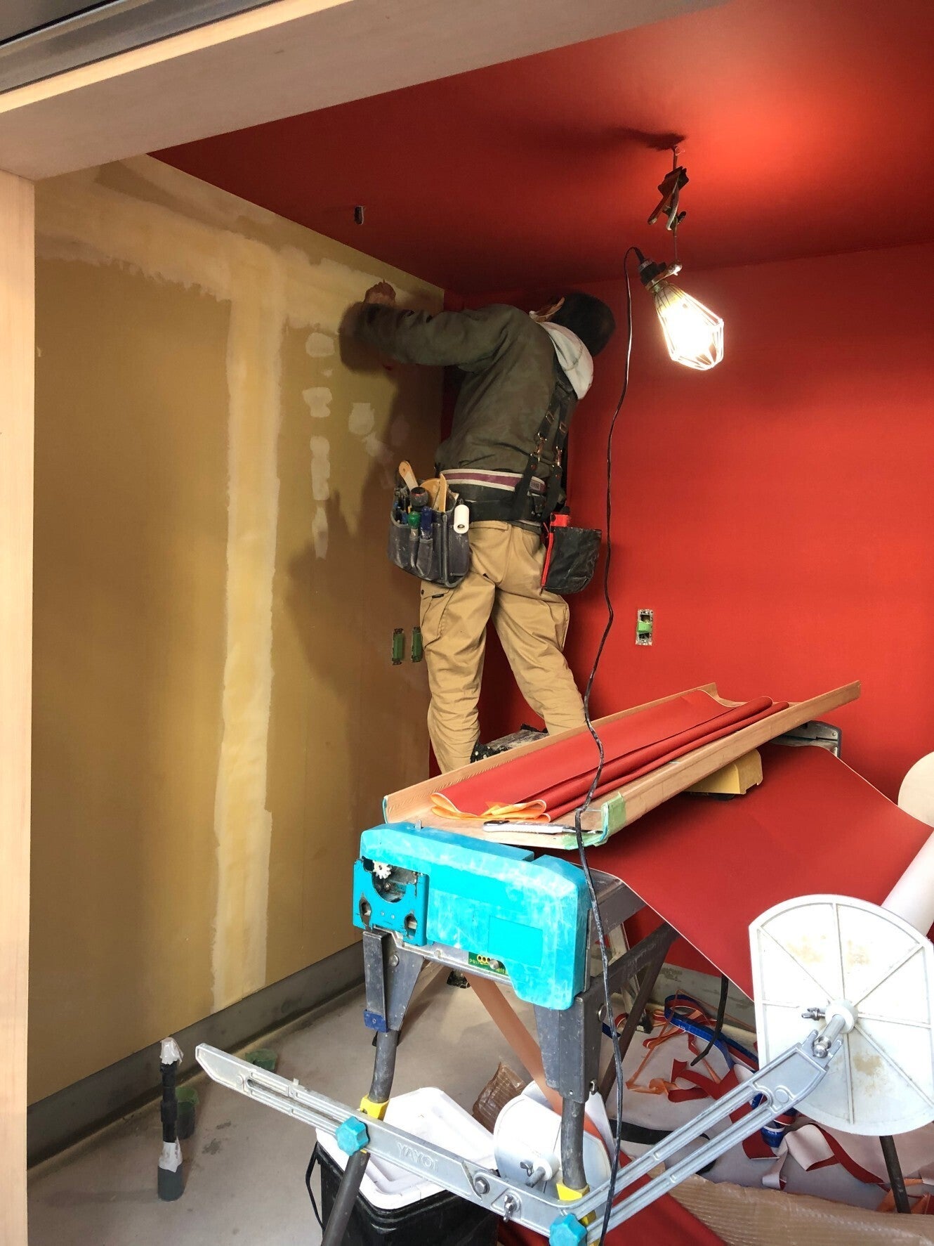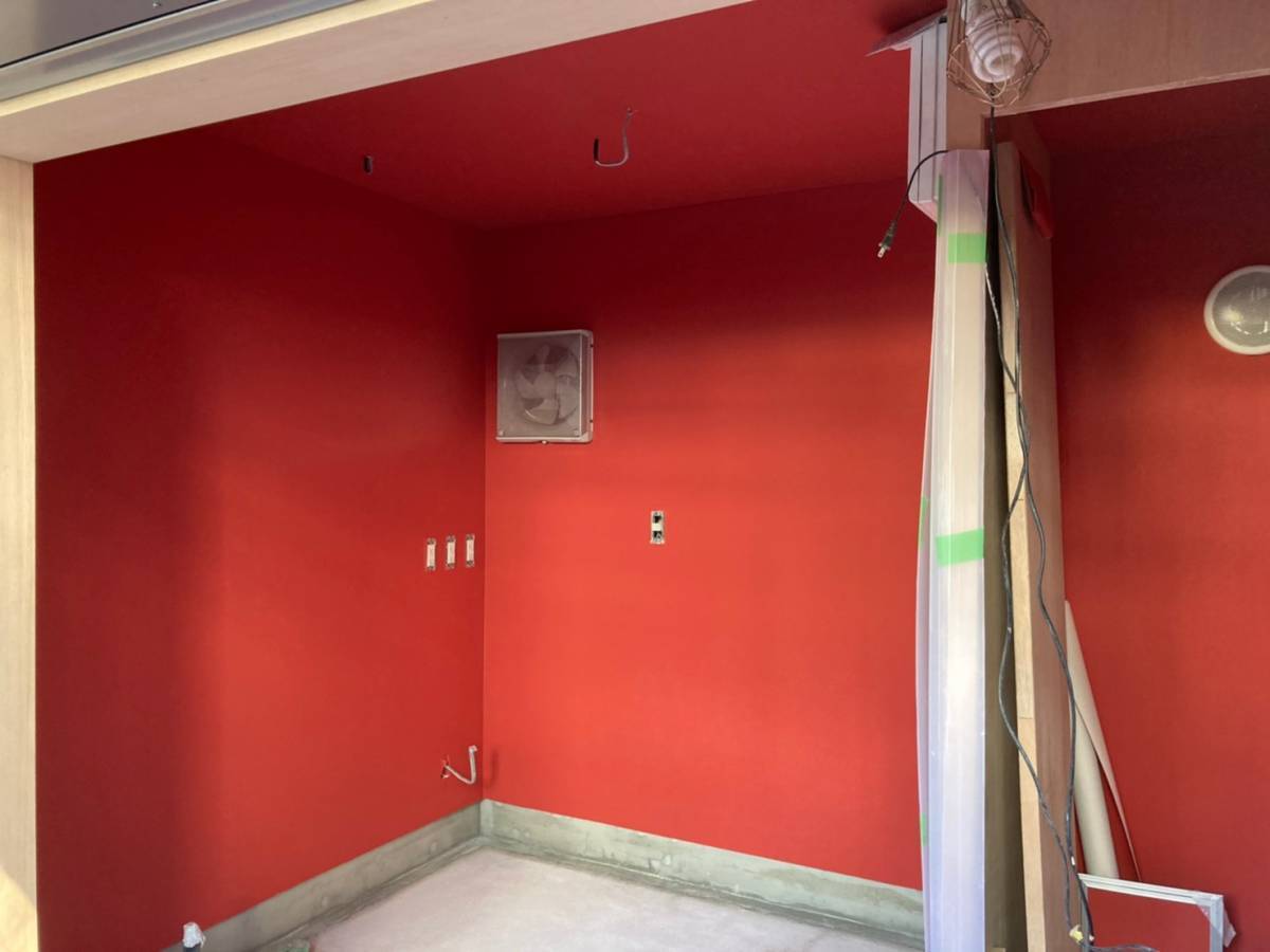 これにちょっと厨房機器を入れていくとあんまりクロスも見えないらしいですが、なんかいよいよって気がしてきました。