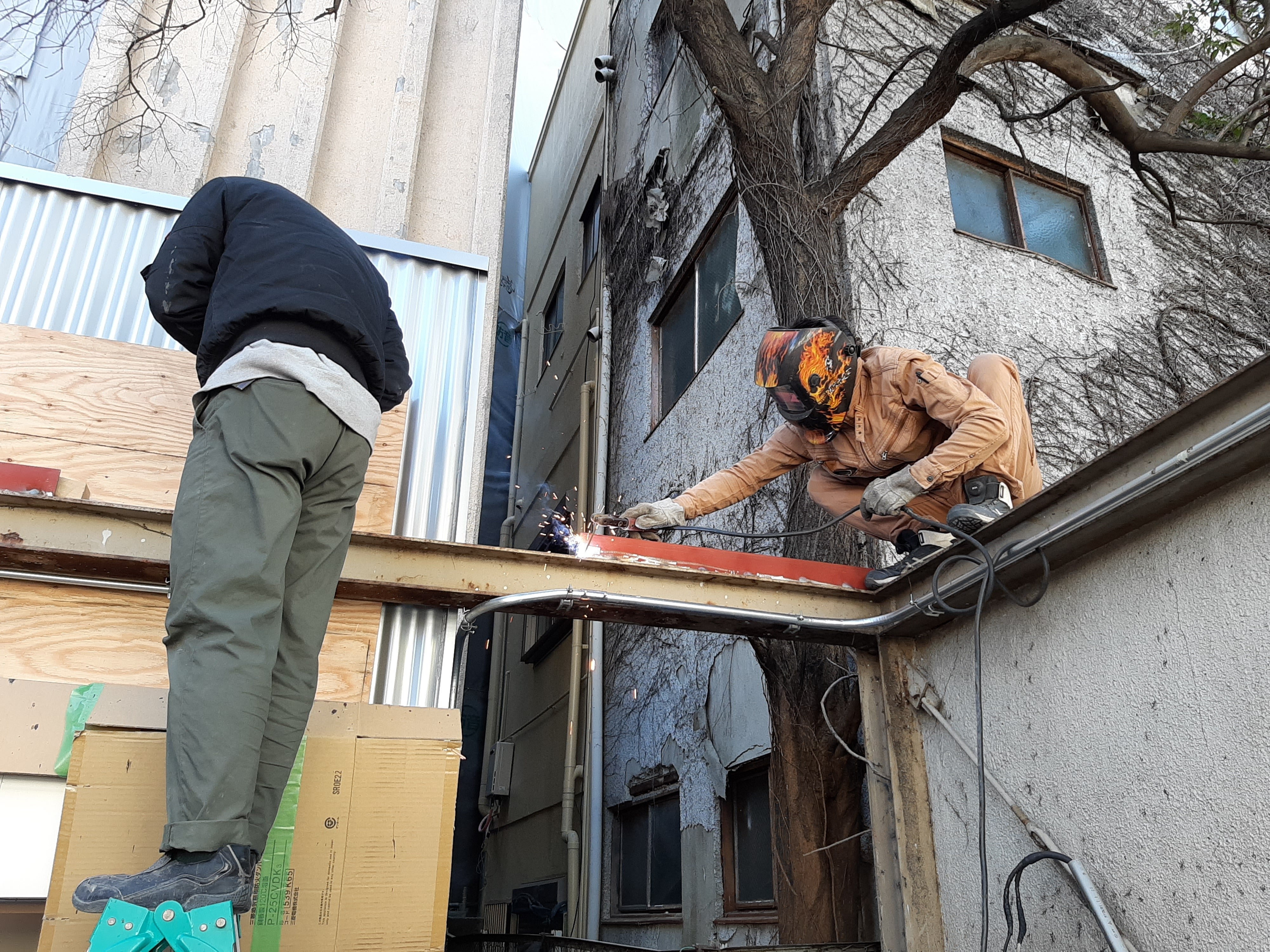 屋根のフレームも溶接してもらってます!なんでもやるなぁ。すごい!