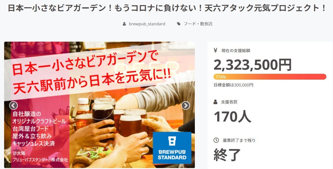 「日本一小さなビアガーデン!もうコロナに負けない!天六アタック元気プロジェクト!」プロジェクトオーナーのbrewpub_standard 松尾弘寿です!