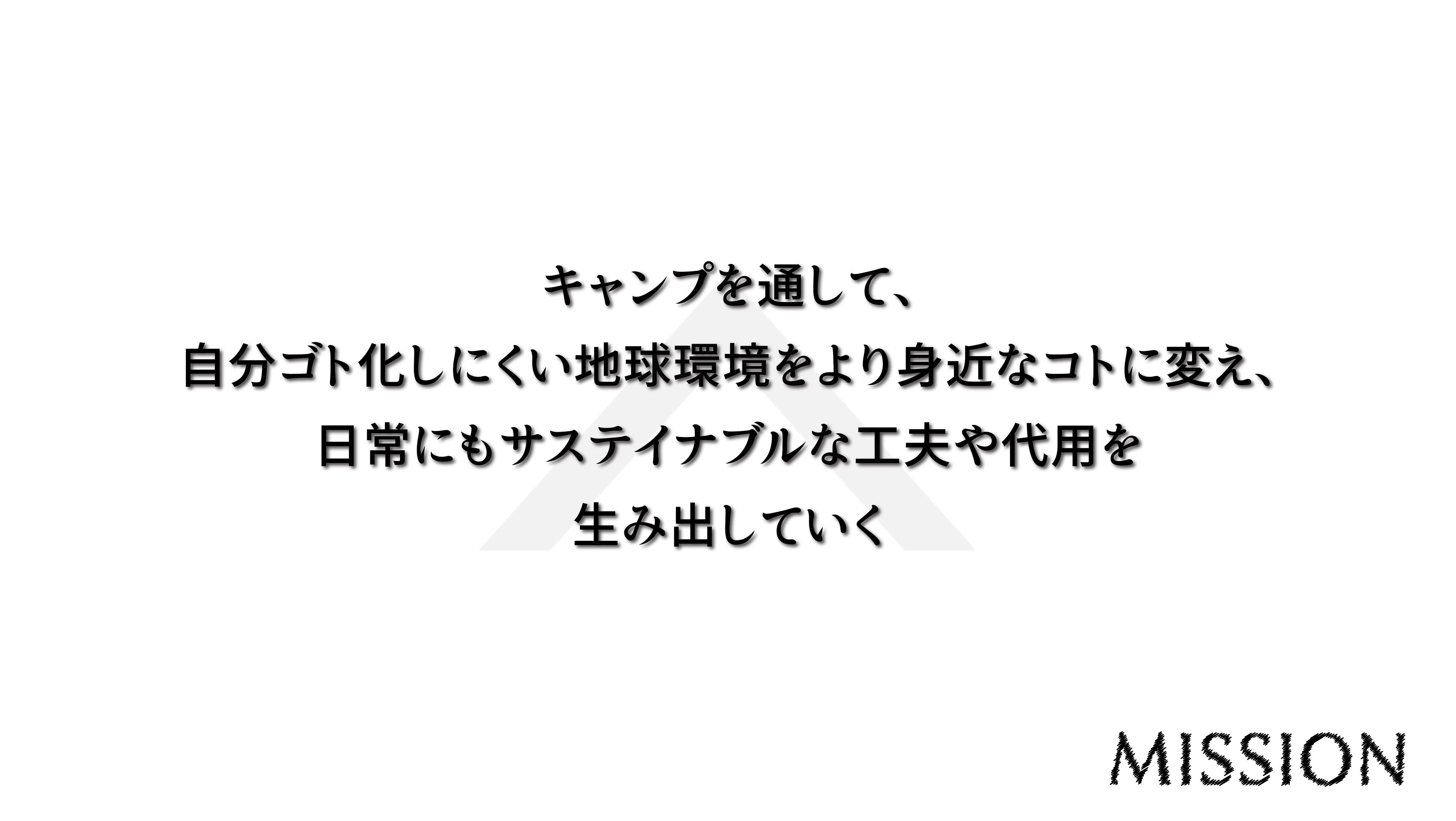 日常生活にありふれたプラスチックをあえてキャンプでは使わないという選択肢をする中で、サステイナブルな商品や丁寧な暮らし方を追求し、今後の日常生活にも生かしていきます。