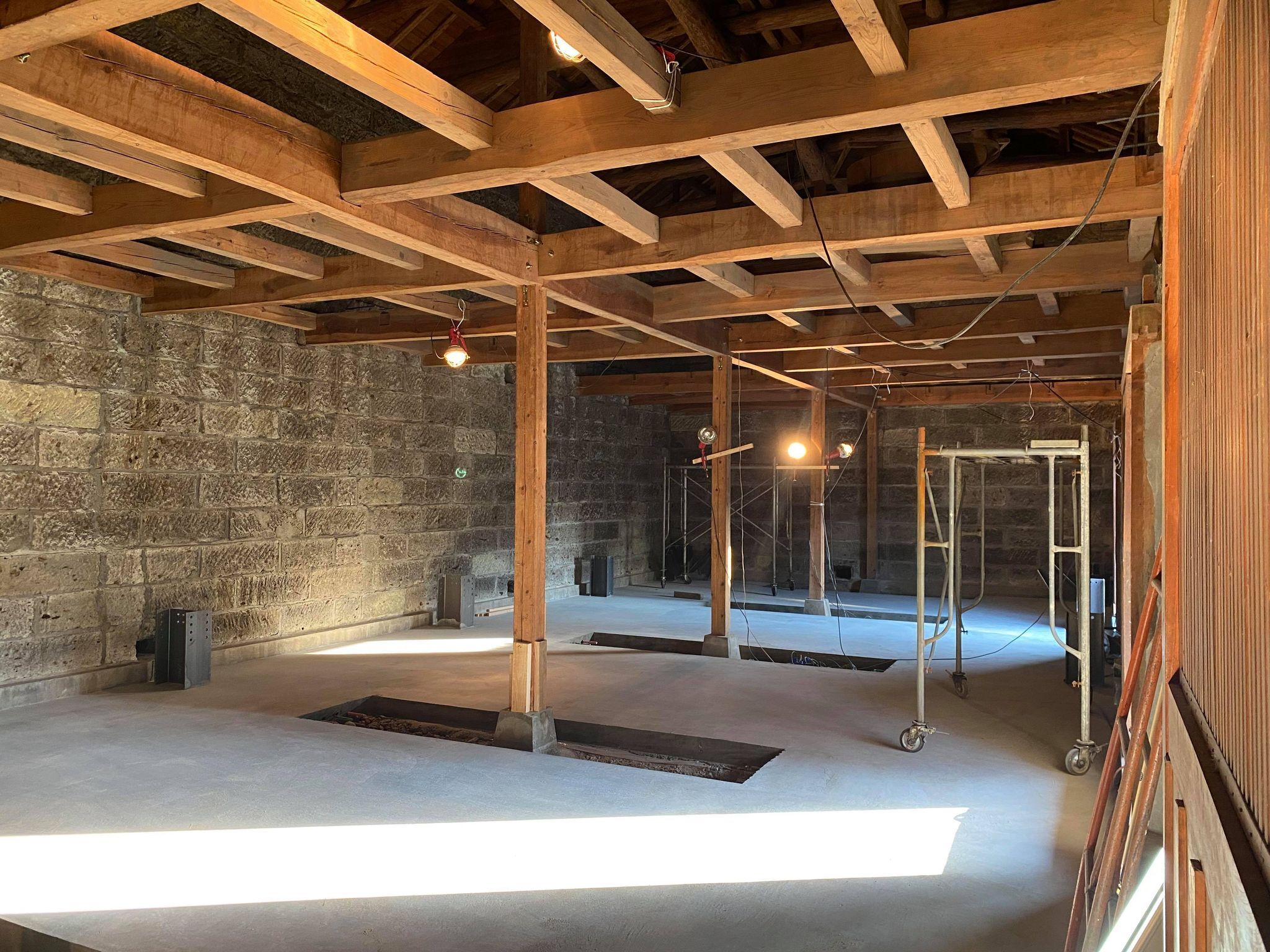 今回は、今まで中々お知らせできていなかった工事過程の様子を中心に、情報をシェアしたいと思います。築100年あまり、かつ関東最大級の蔵ともなると、耐震補強もかなり大掛かりでした。小さな扉から入るサイズの機械や材料のみで作業する職人さんの技など、オープン後も来場者に伝えていきたいです。
