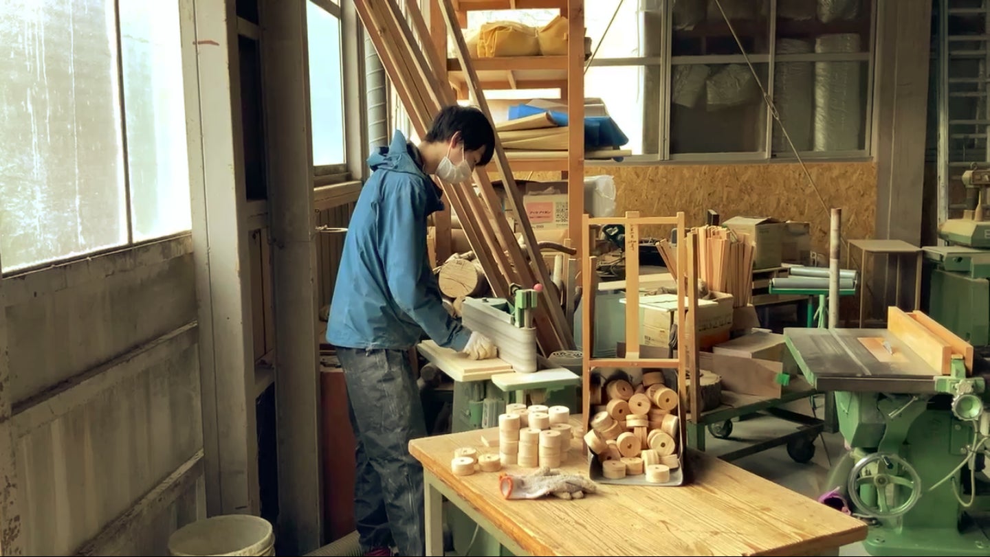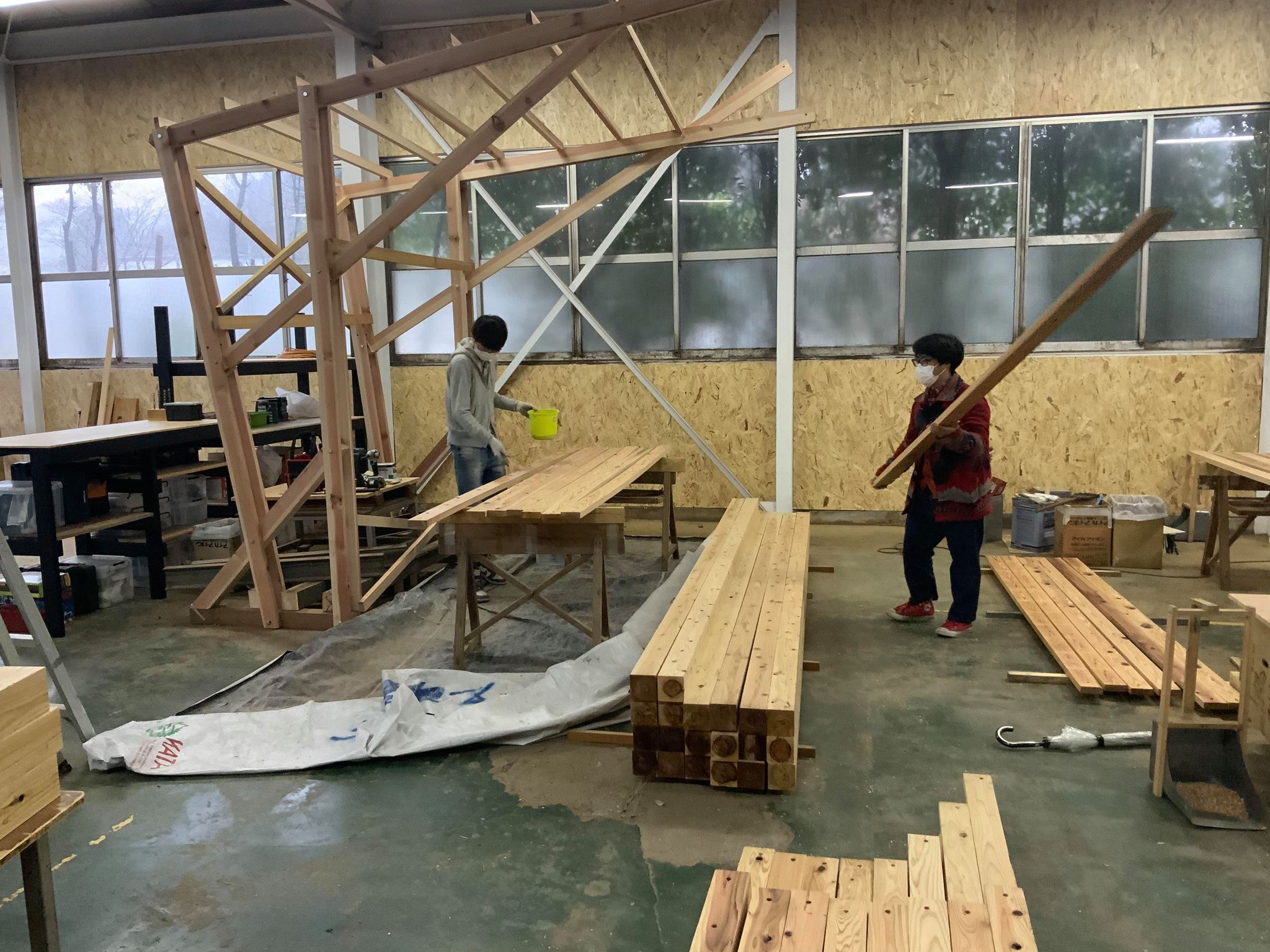 小川町内のクラフトスペース「ZAIMOKU TERRACE」にて、小川町産の木を使用して、制作をしている様子です。