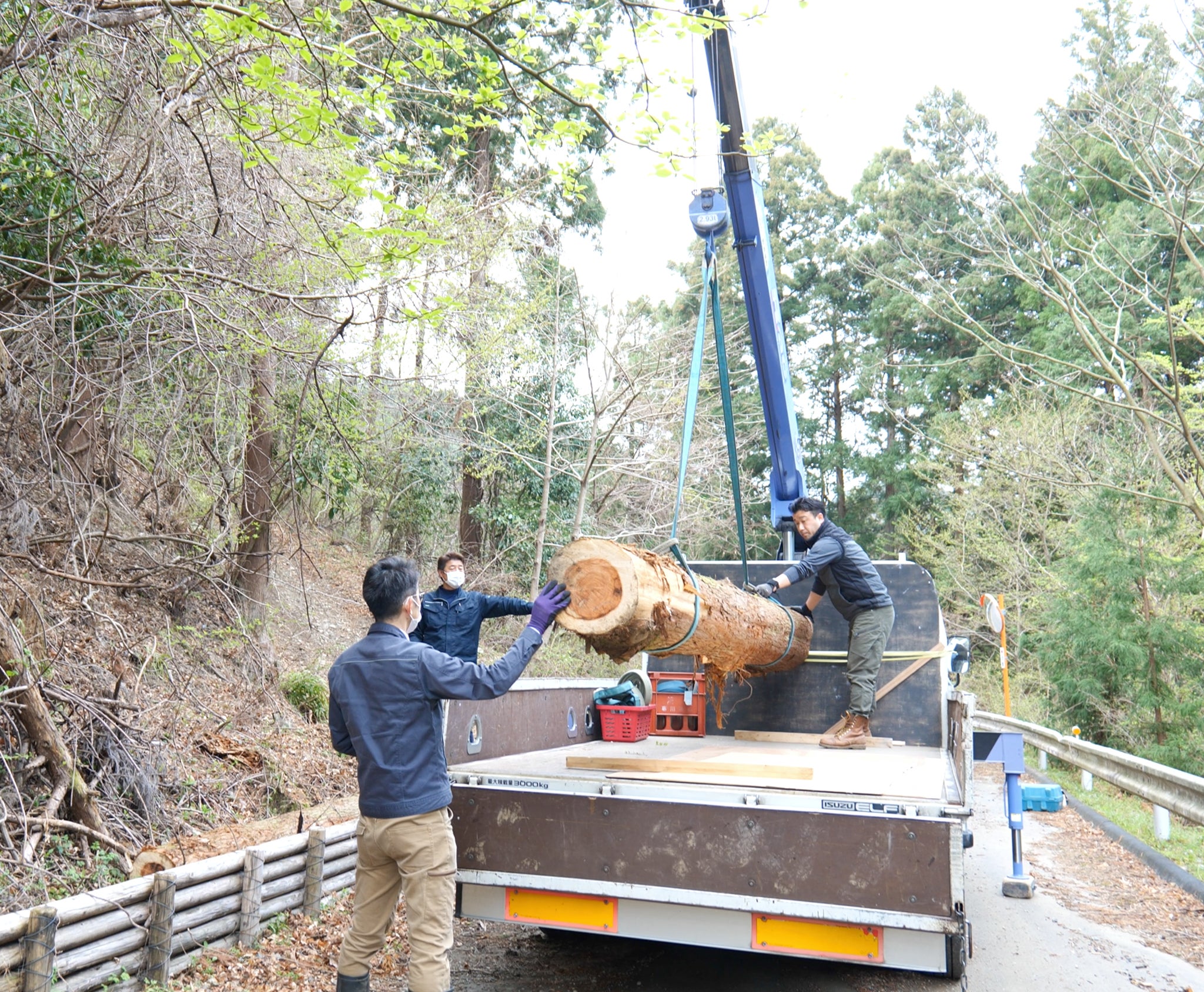石蔵とほぼ同級生のこちらの杉の木。伐採して、ワークスペースのテーブルや小物などに使用されます。枝の方まで、余すことなく活用できたらと思います。
