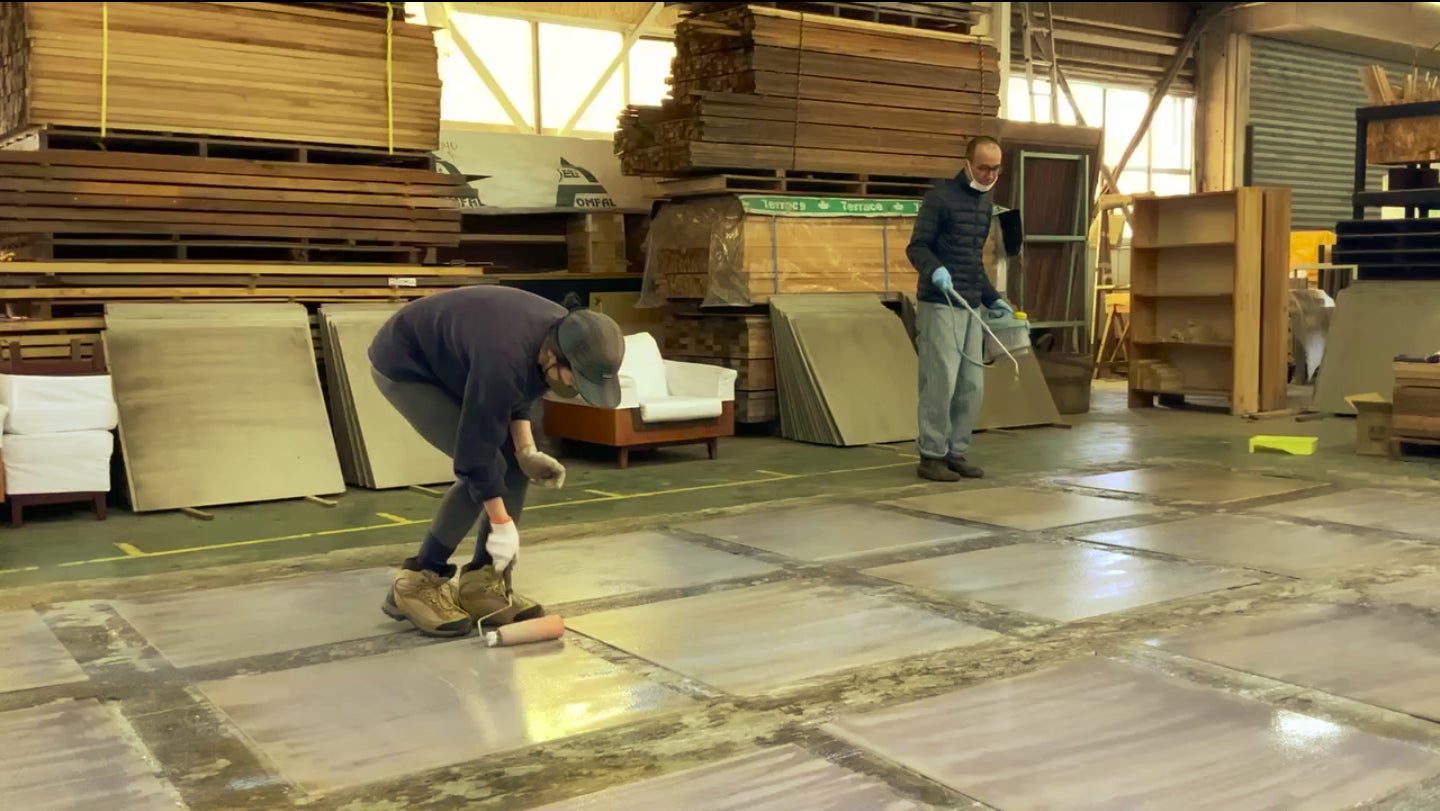 イベントとしてメンバー以外の方にもお手伝いいただいた床塗り大作戦!90cm角の板を枚数216枚、2度塗りしました。ご参加いただいた方、本当にありがとうございます。