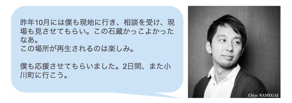 本プロジェクトは、特定非営利活動法人あかりえにとって大きな挑戦となりますが、石蔵オーナー、小川町役場、株式会社竹中工務店をはじめ、たくさんの町内外の方々の支えがあったことでスタートを切ることができました。