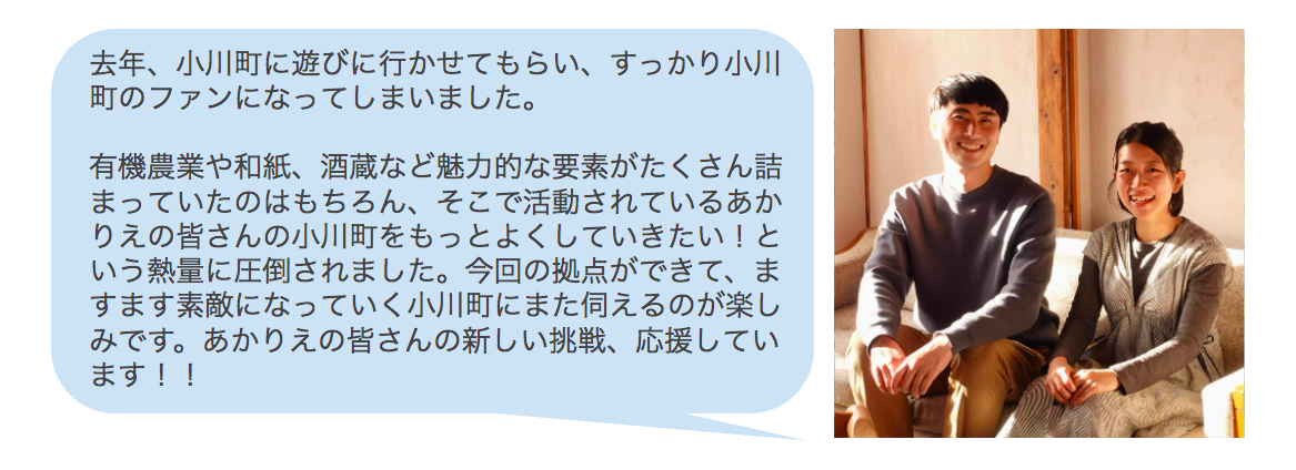 一緒に小川町で多様な地域社会を持続的に作っていけたら嬉しいです。