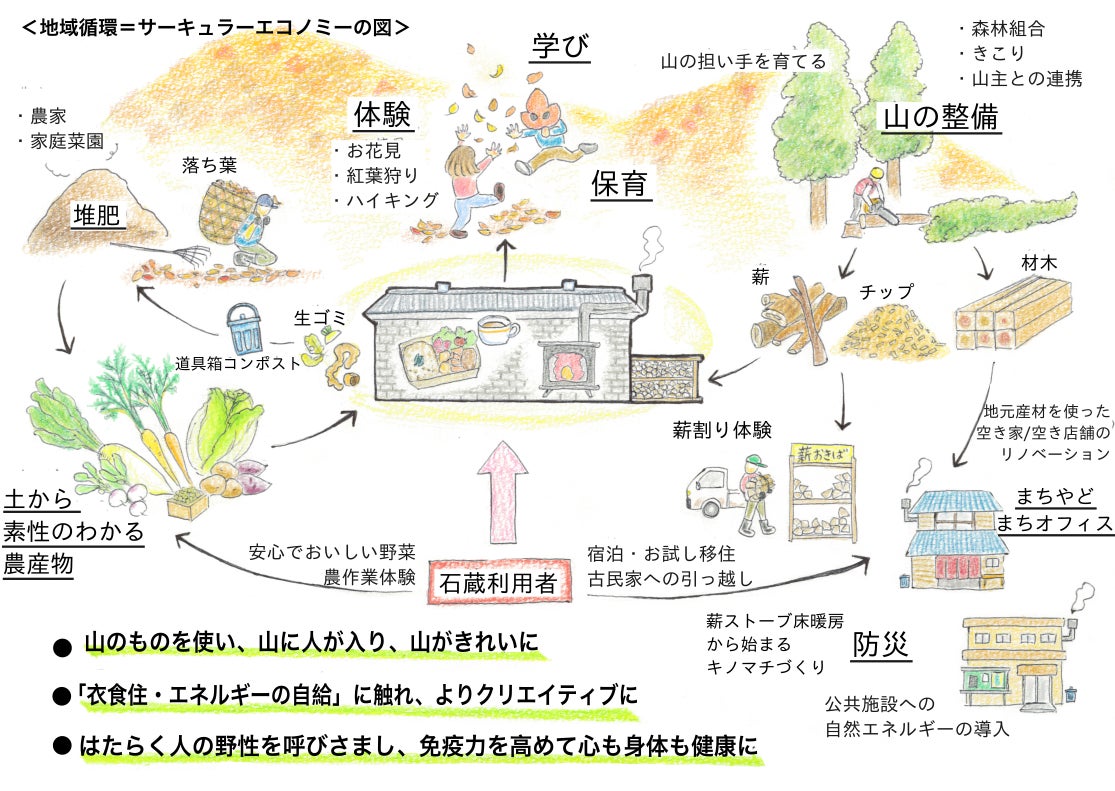 今回は暖を取るためのエネルギーを山から取ってきて、というお話ですが、キッチンも併設されます。提供するメニューをなるべく廃棄を少なくしたり、コンポストを導入して畑と繋げたり、その都度、知恵を絞っていけたらと思っています。
