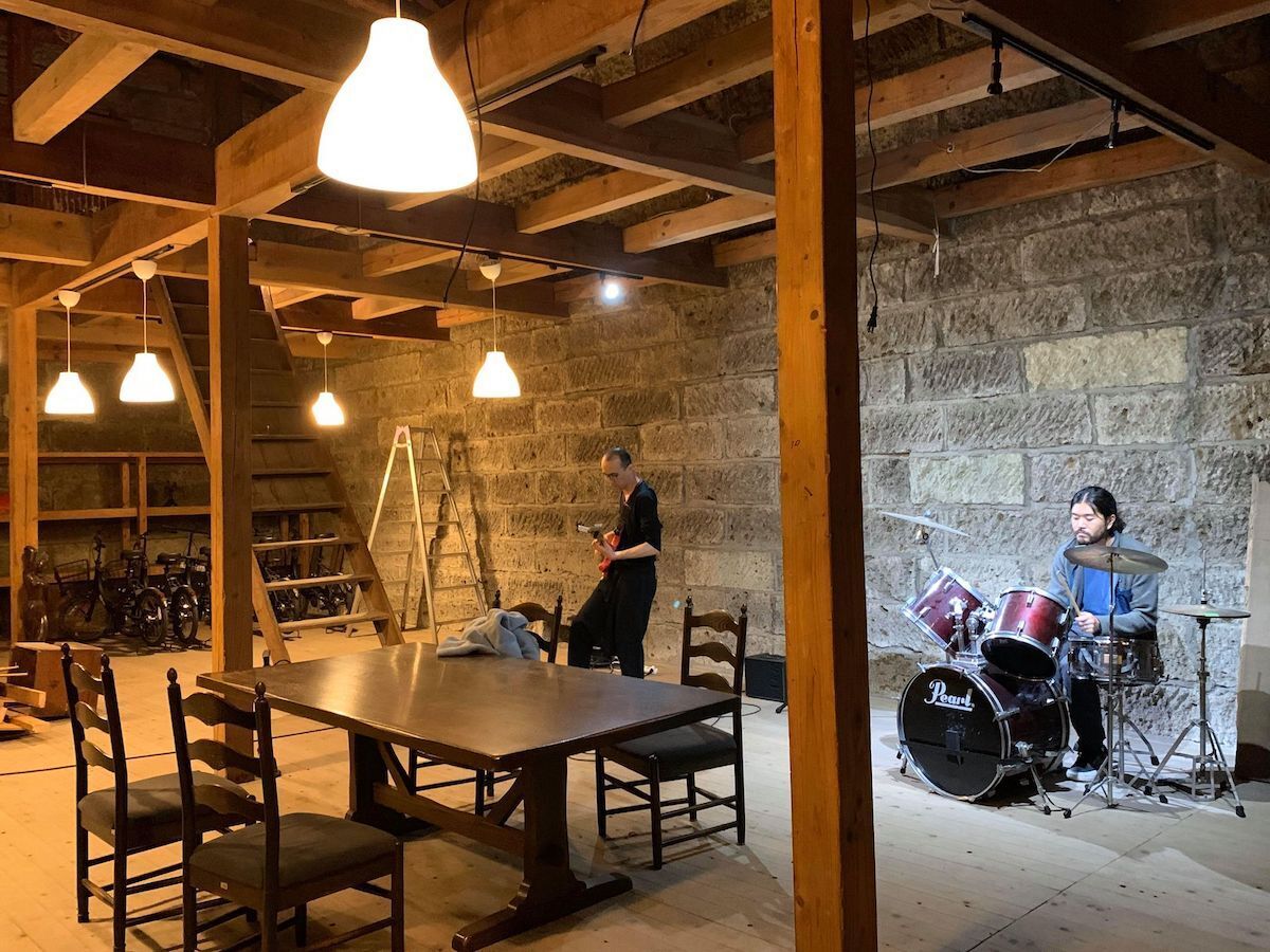 石蔵にて音響のチェックを行なった様子